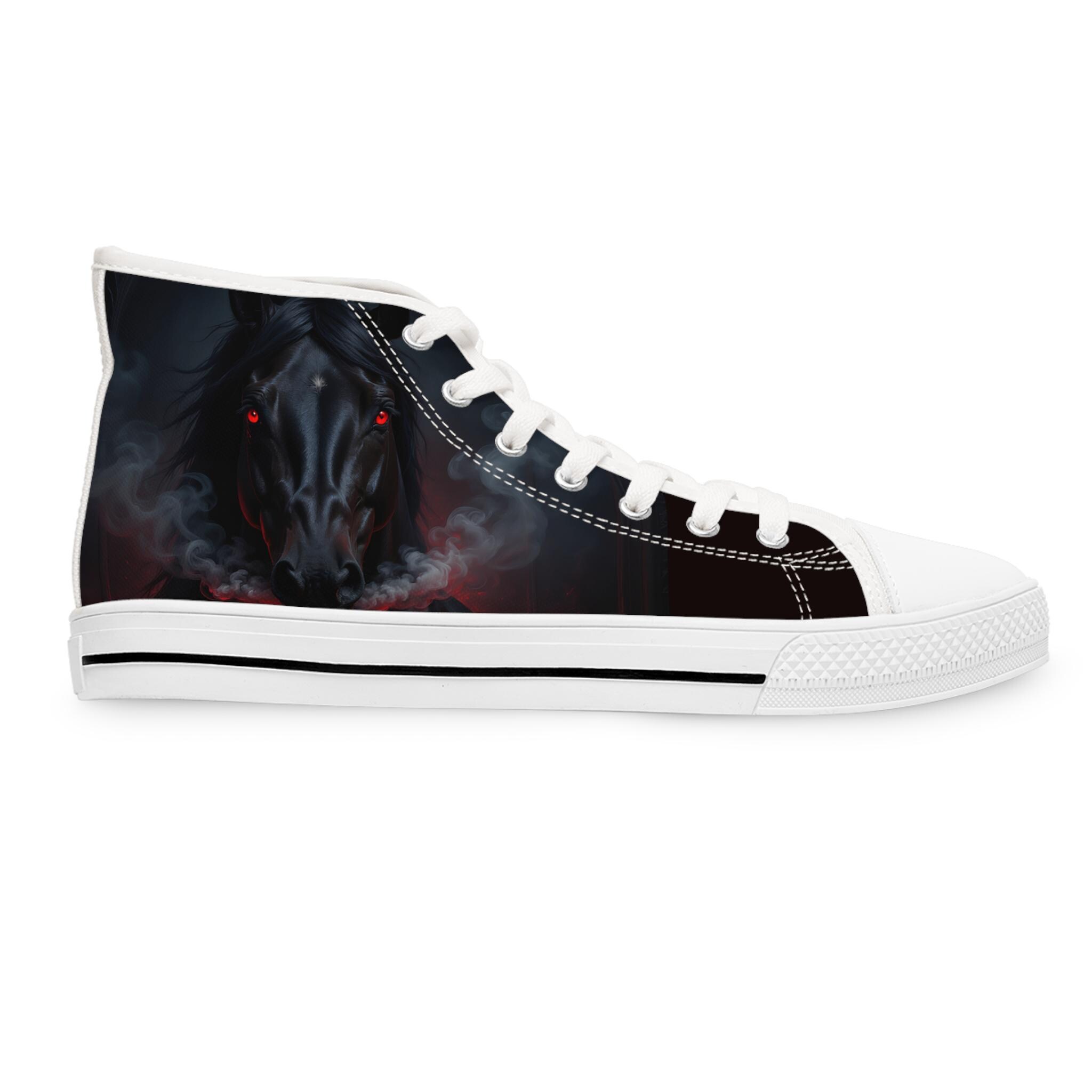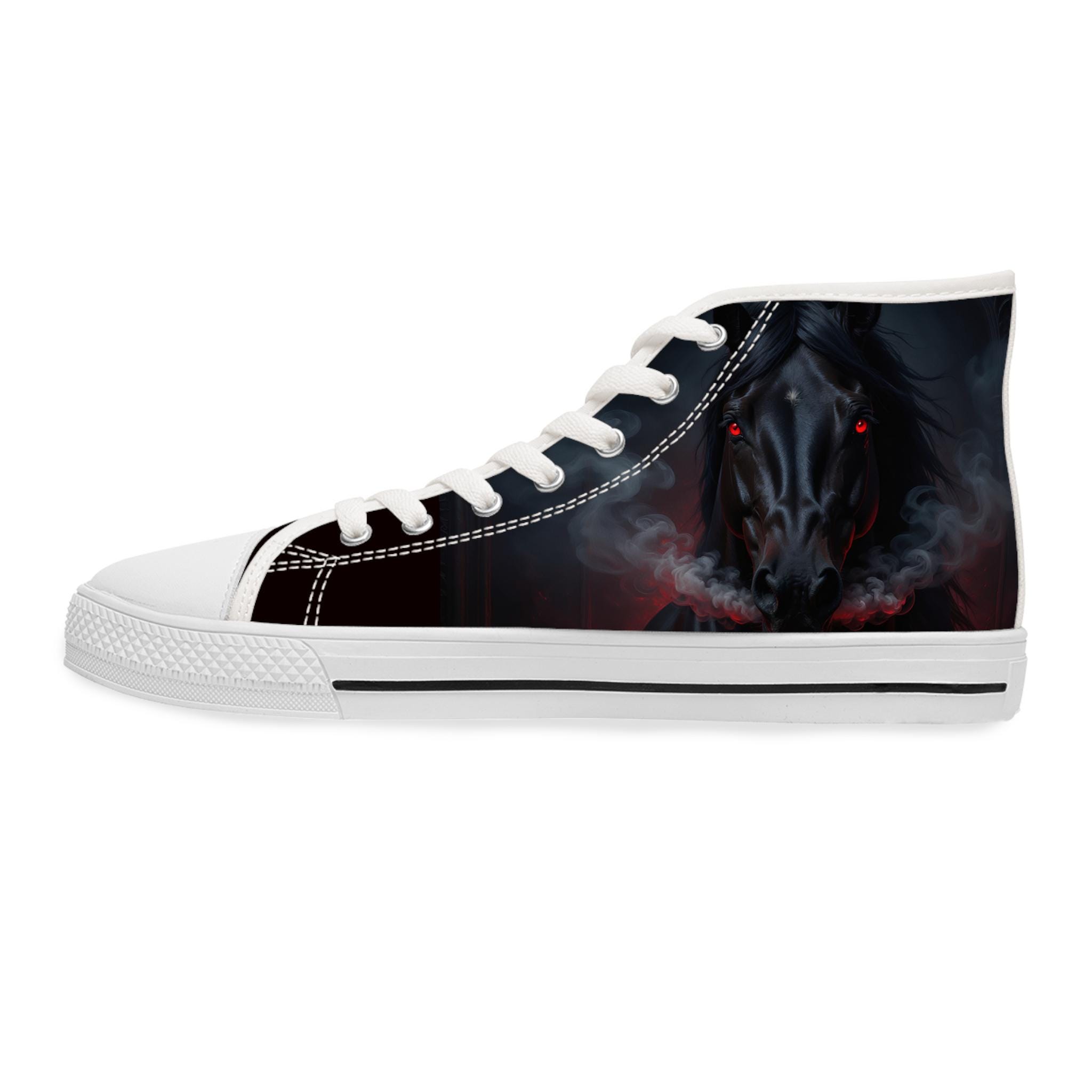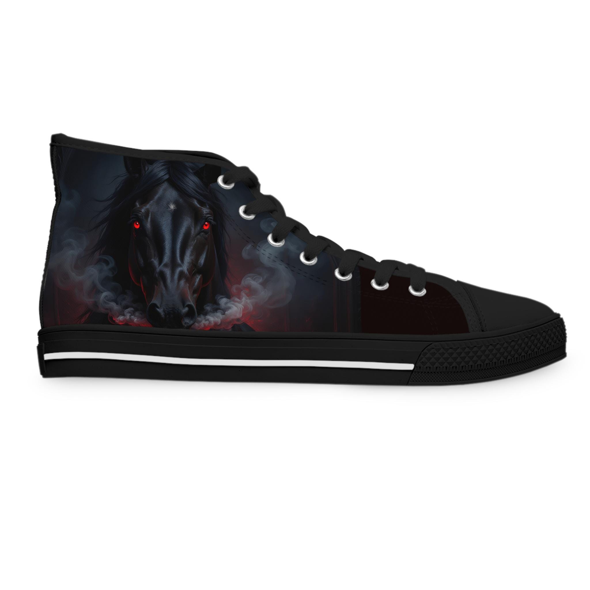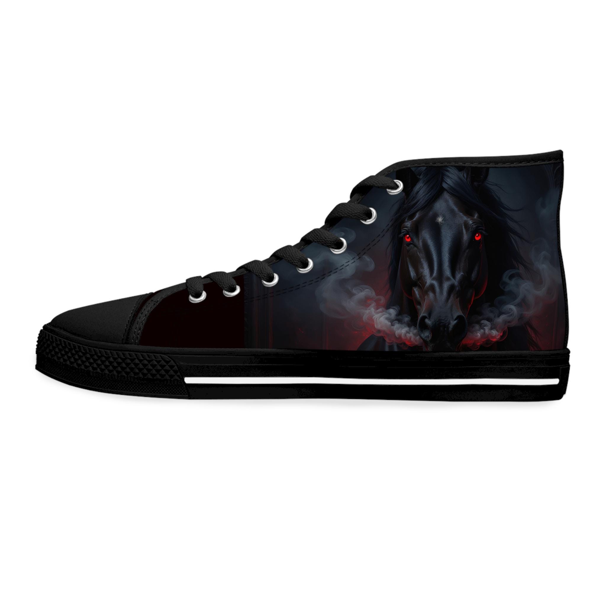 These high-top canvas sneakers bring a dark, smoky edge to everyday wear. The wraparound print blends deep blacks and muted plumes of color for a brooding, artful look that reads like a mini canvas on your feet. Built with cushioned EVA memory-foam insoles and a flexible, shock-absorbing midsole, they move with you all day without feeling heavy. Metal eyelets and pleather-reinforced toes add durability where it counts. Wear them with cropped jeans, layered streetwear, or a flowing dress to let the design peek through — they add quiet attitude without shouting for attention.