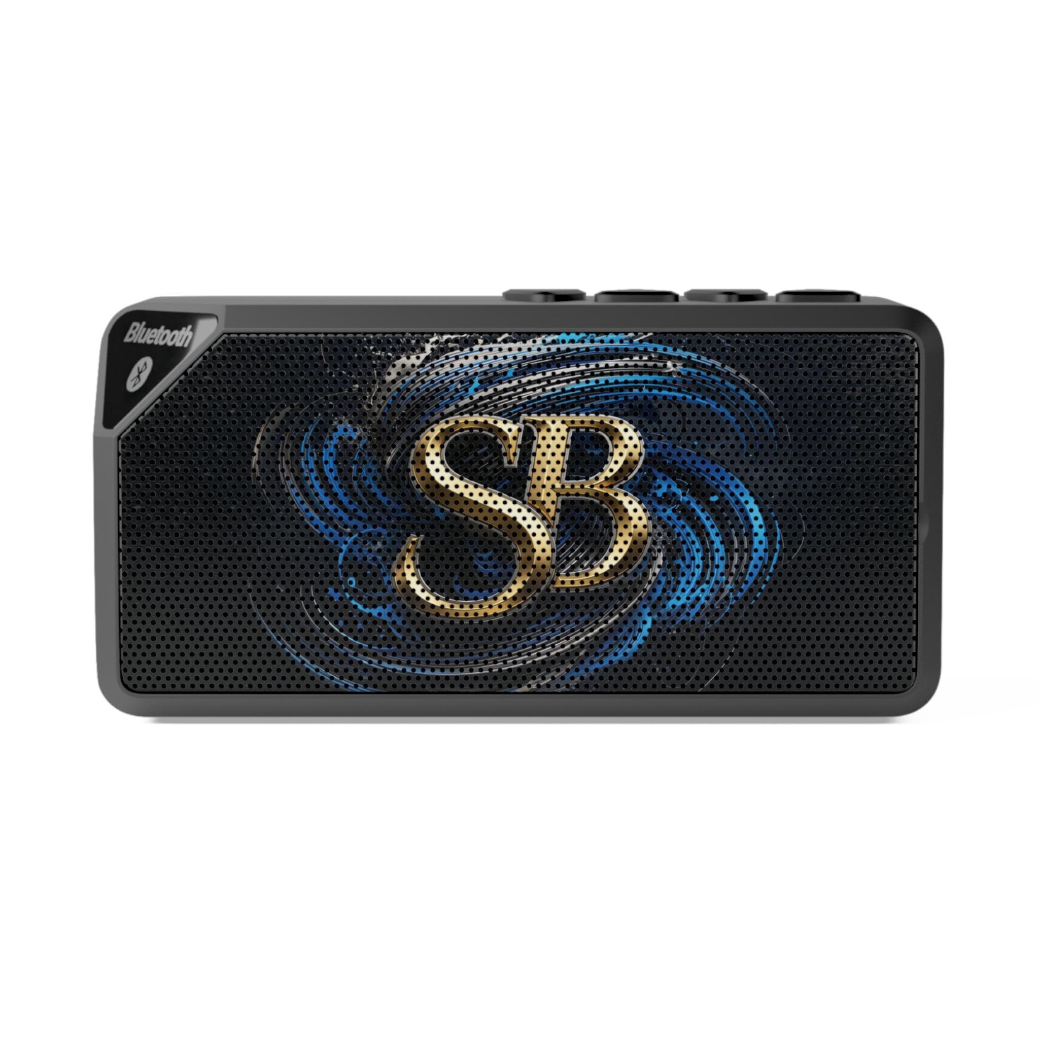 A compact portable speaker that brings clear sound and simple connectivity wherever you go. The matte ABS shell feels sturdy in hand and resists bumps while the front grille showcases a bold, swirling logo design that draws the eye. Pair any smartphone or tablet via Bluetooth up to 10 meters away, or plug in classic devices with the 3.5 mm aux input. The built-in 3.7V/500mAh Li-ion battery delivers around two hours of playback at full volume — enough for a short beach set, a focused workout, or background music while you tinker in the garage. Controls sit on top for quick volume and track changes, and the micro-USB port makes topping up the battery easy. Thoughtful, portable, and visually striking, this speaker fits into active, on-the-go lives that value bold style and straightforward performance.