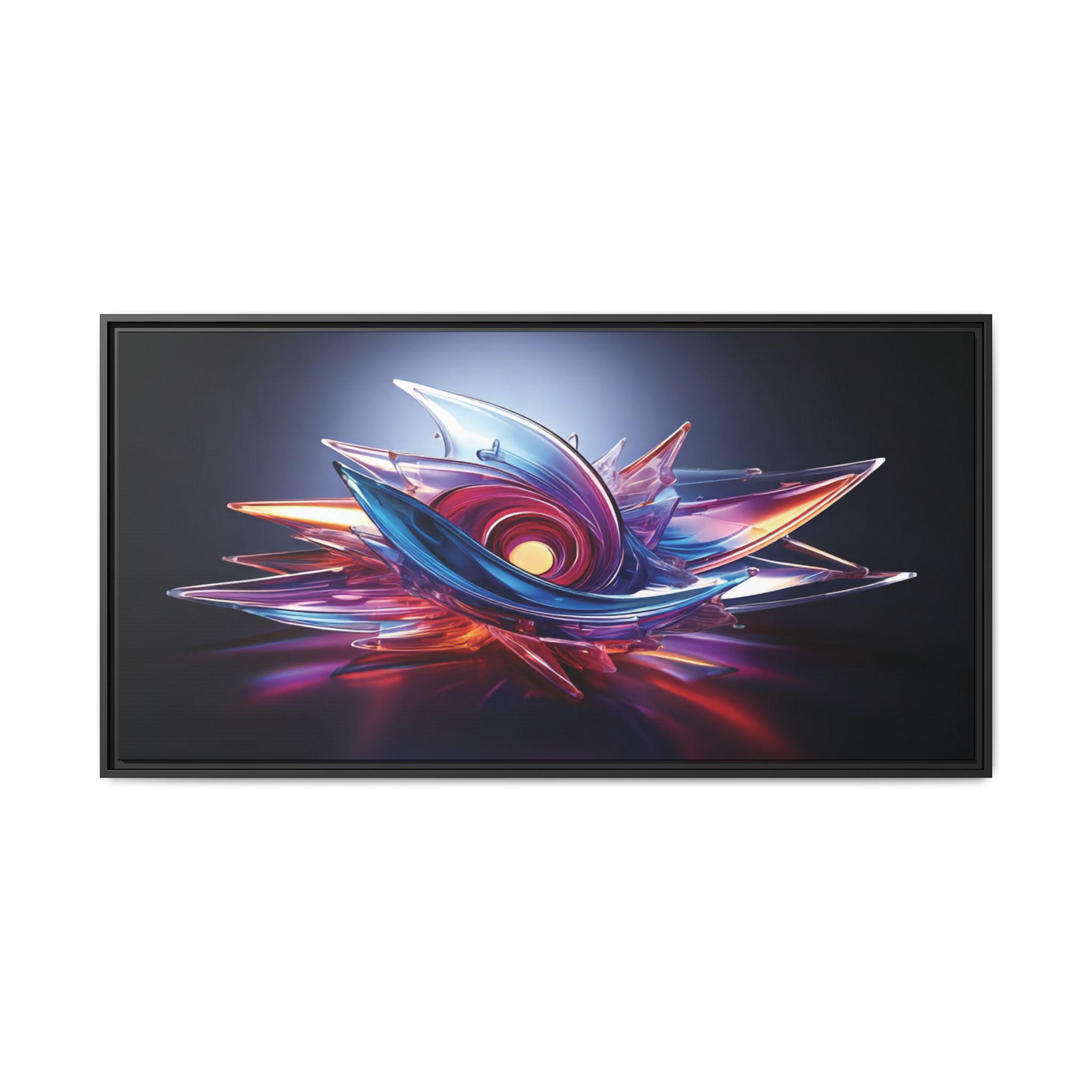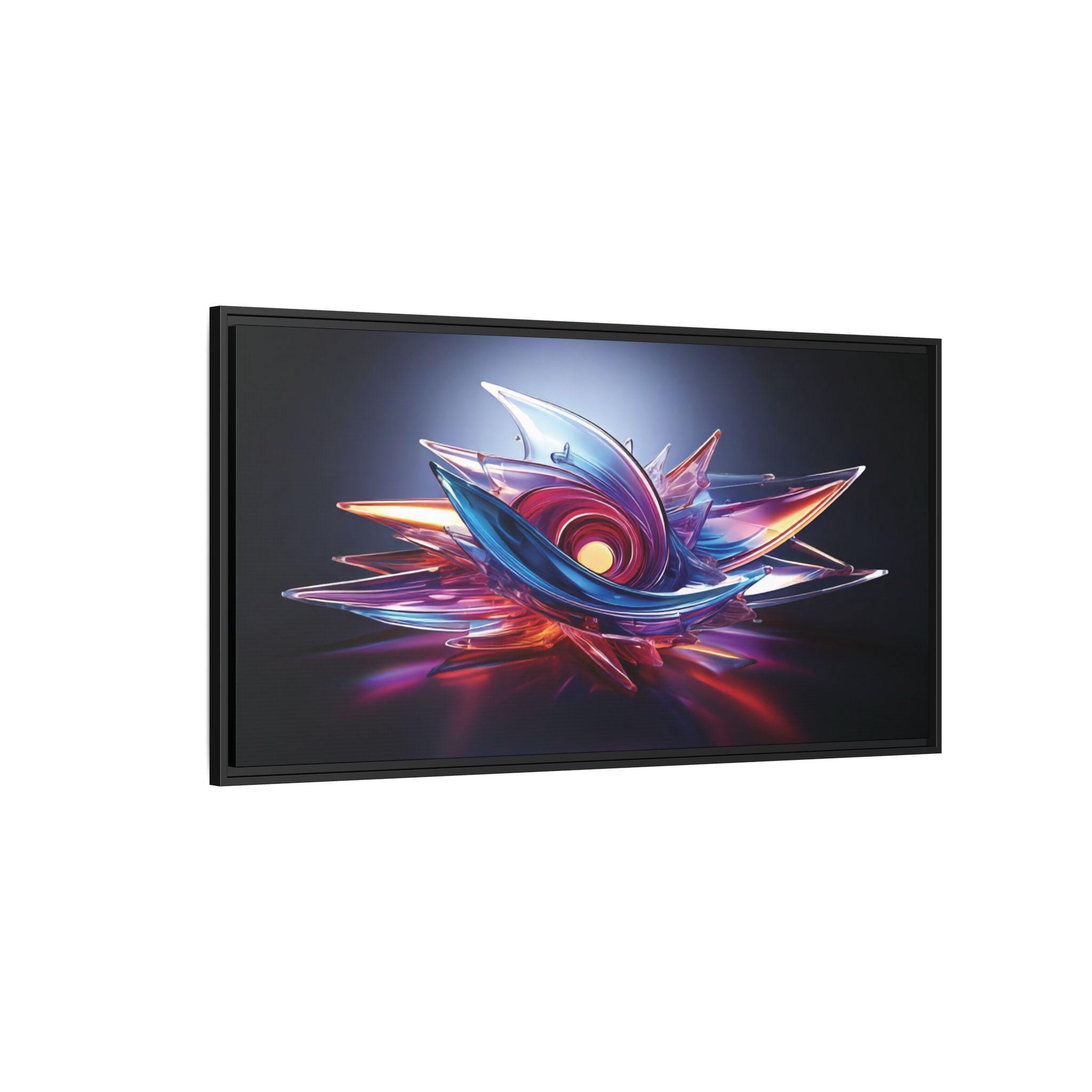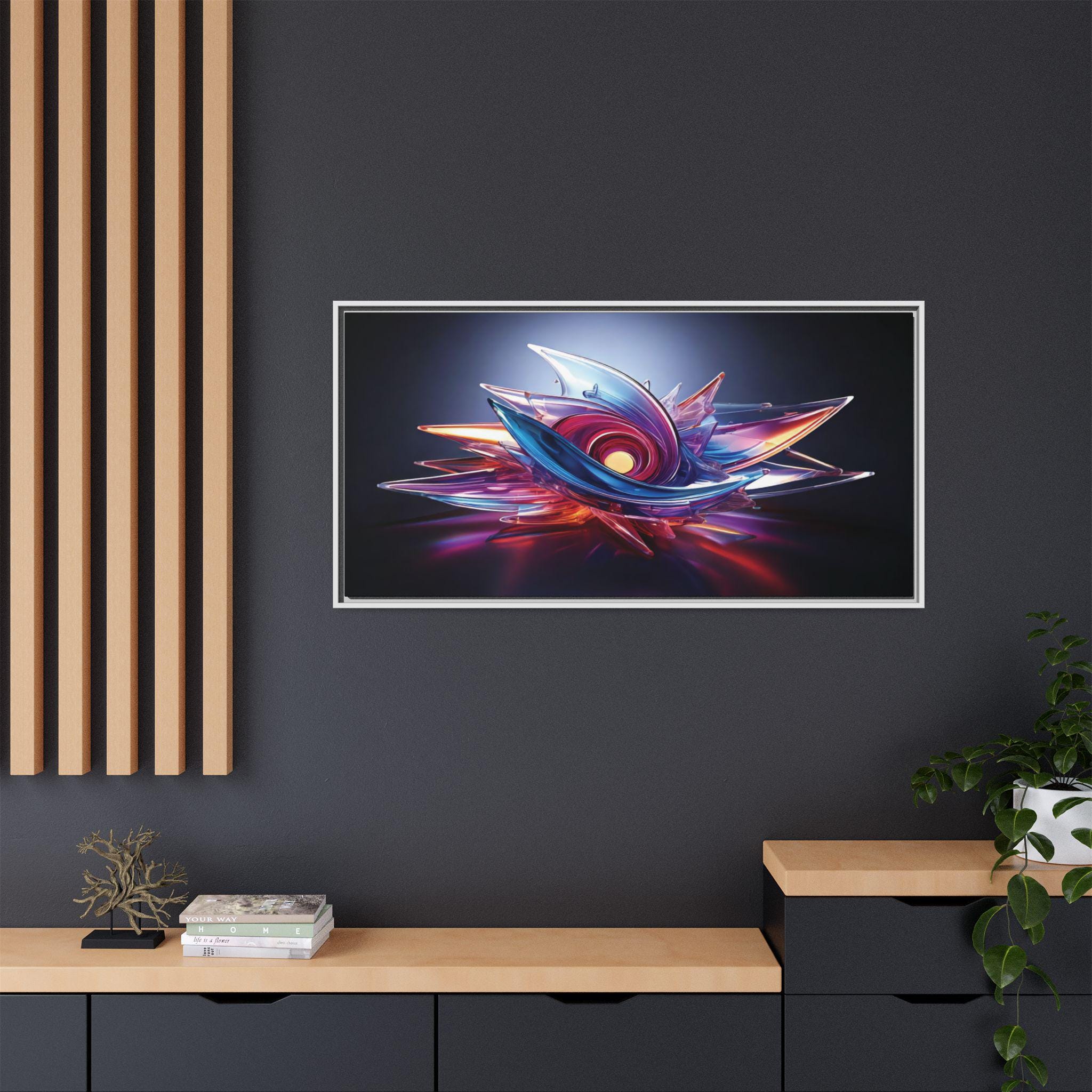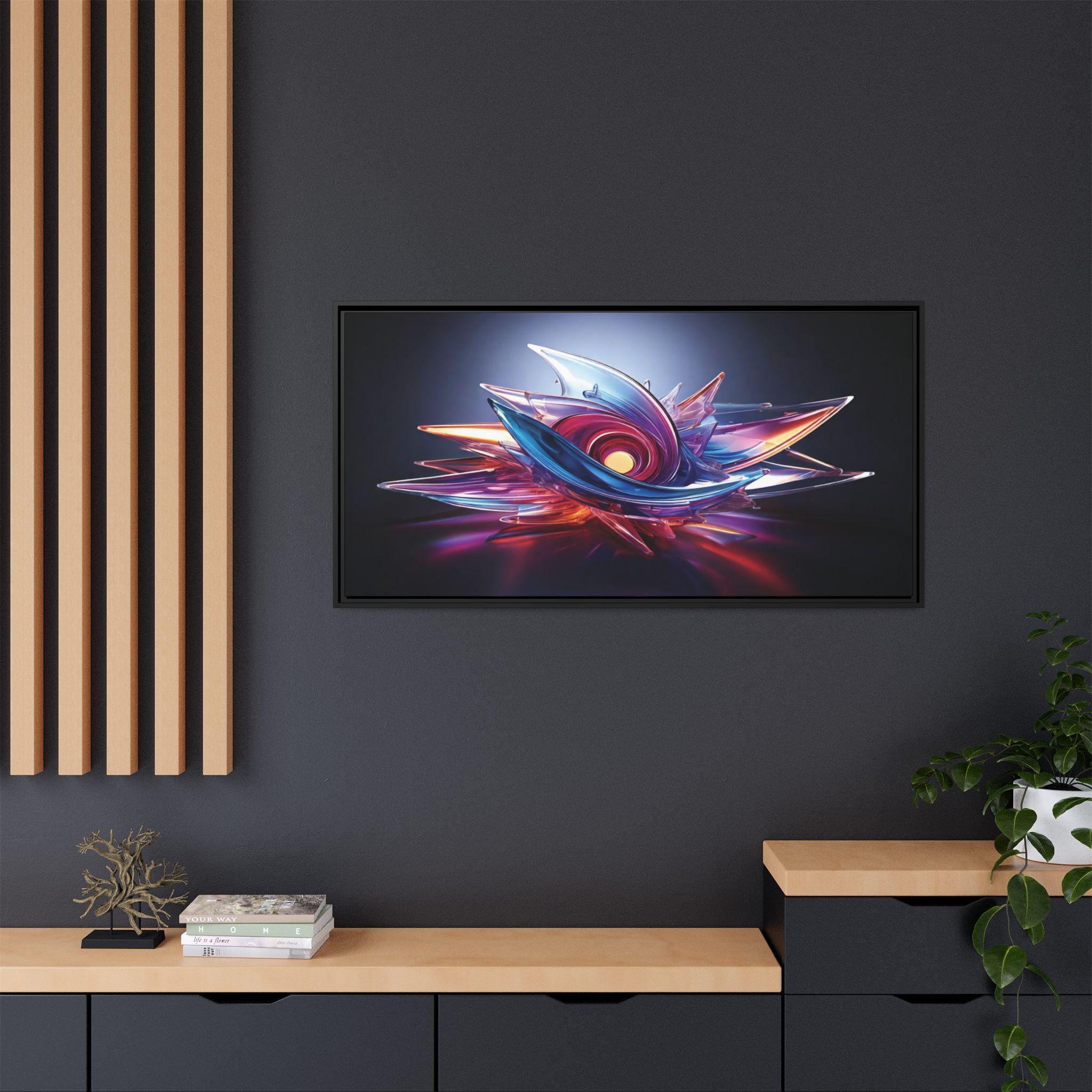 A framed matte canvas print that pulls the room into another world. Deep blacks and luminous, jewel-toned highlights give the abstract, crystalline form a sense of motion—like a captured aurora or a sculpted light wave. The slim pine frame adds a warm, natural edge that balances the artwork’s high-tech glow, making it easy to hang in living rooms, home studios, or modern office nooks. It arrives ready to display with sawtooth hardware and a robust, sustainably sourced frame that keeps the image flat and vivid for years.