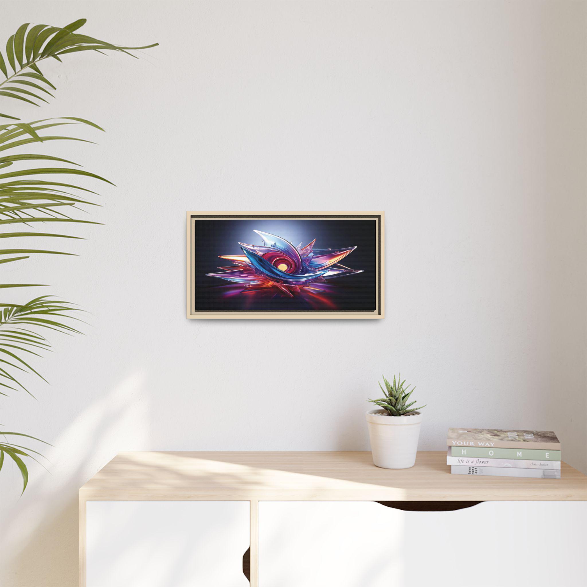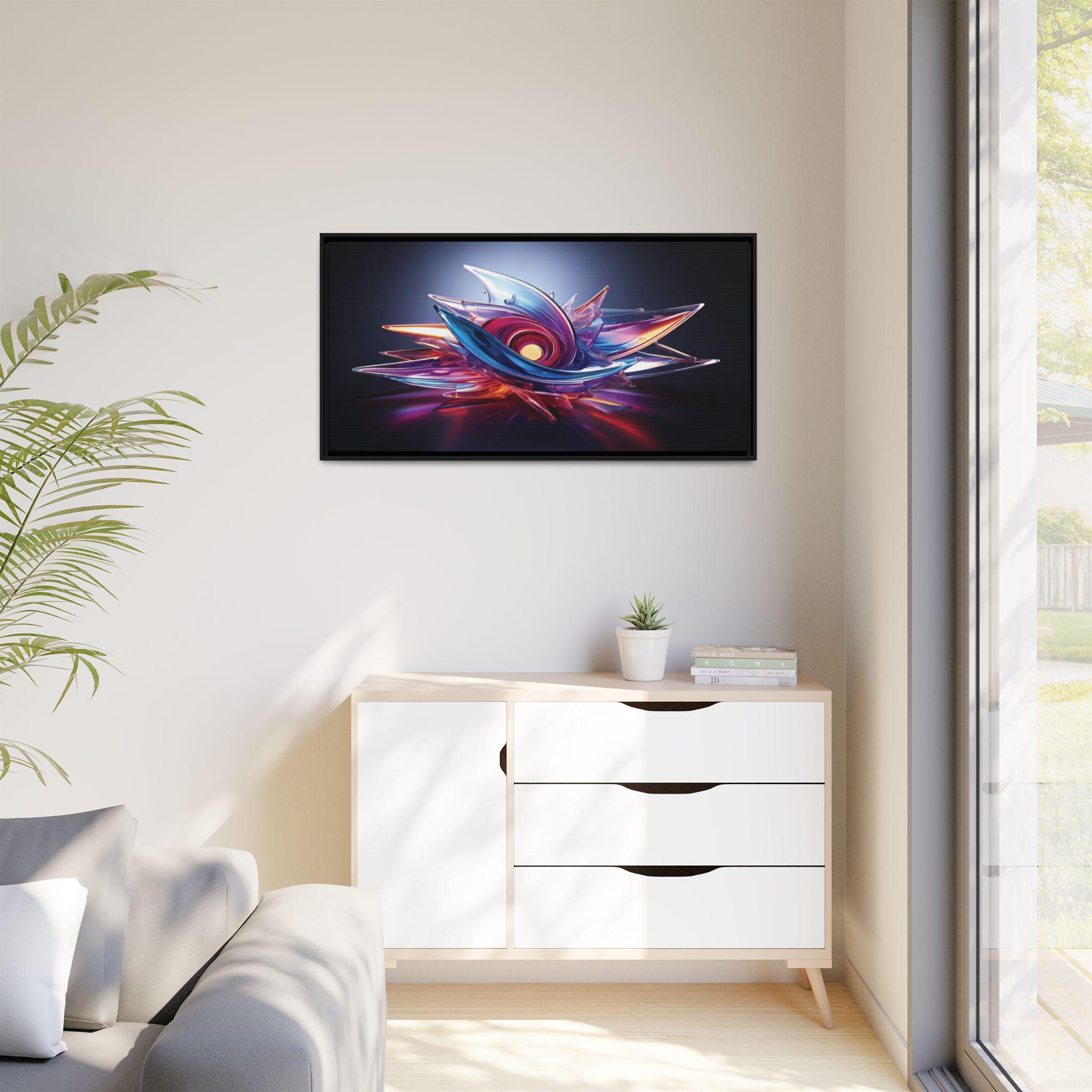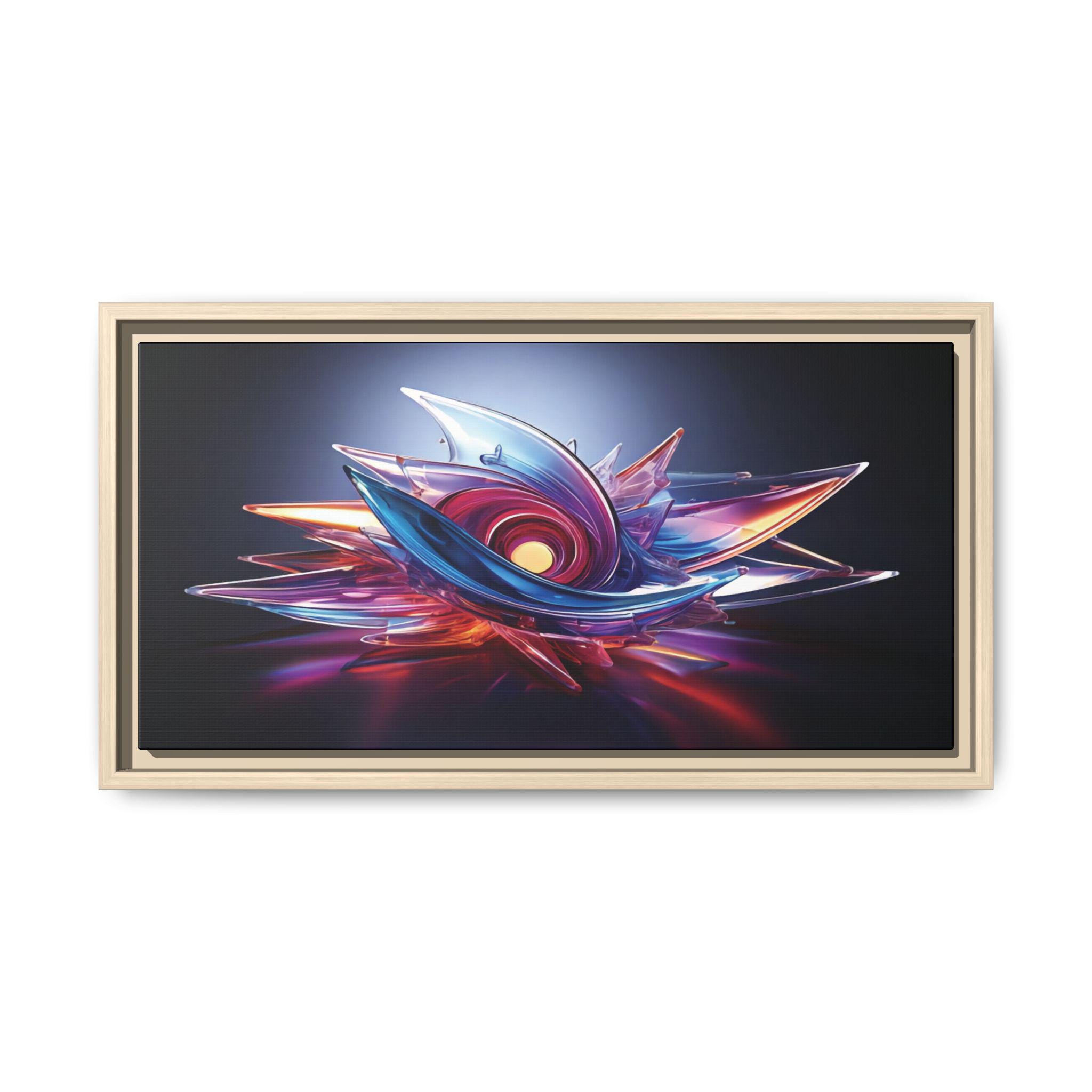 A framed matte canvas print that pulls the room into another world. Deep blacks and luminous, jewel-toned highlights give the abstract, crystalline form a sense of motion—like a captured aurora or a sculpted light wave. The slim pine frame adds a warm, natural edge that balances the artwork’s high-tech glow, making it easy to hang in living rooms, home studios, or modern office nooks. It arrives ready to display with sawtooth hardware and a robust, sustainably sourced frame that keeps the image flat and vivid for years.