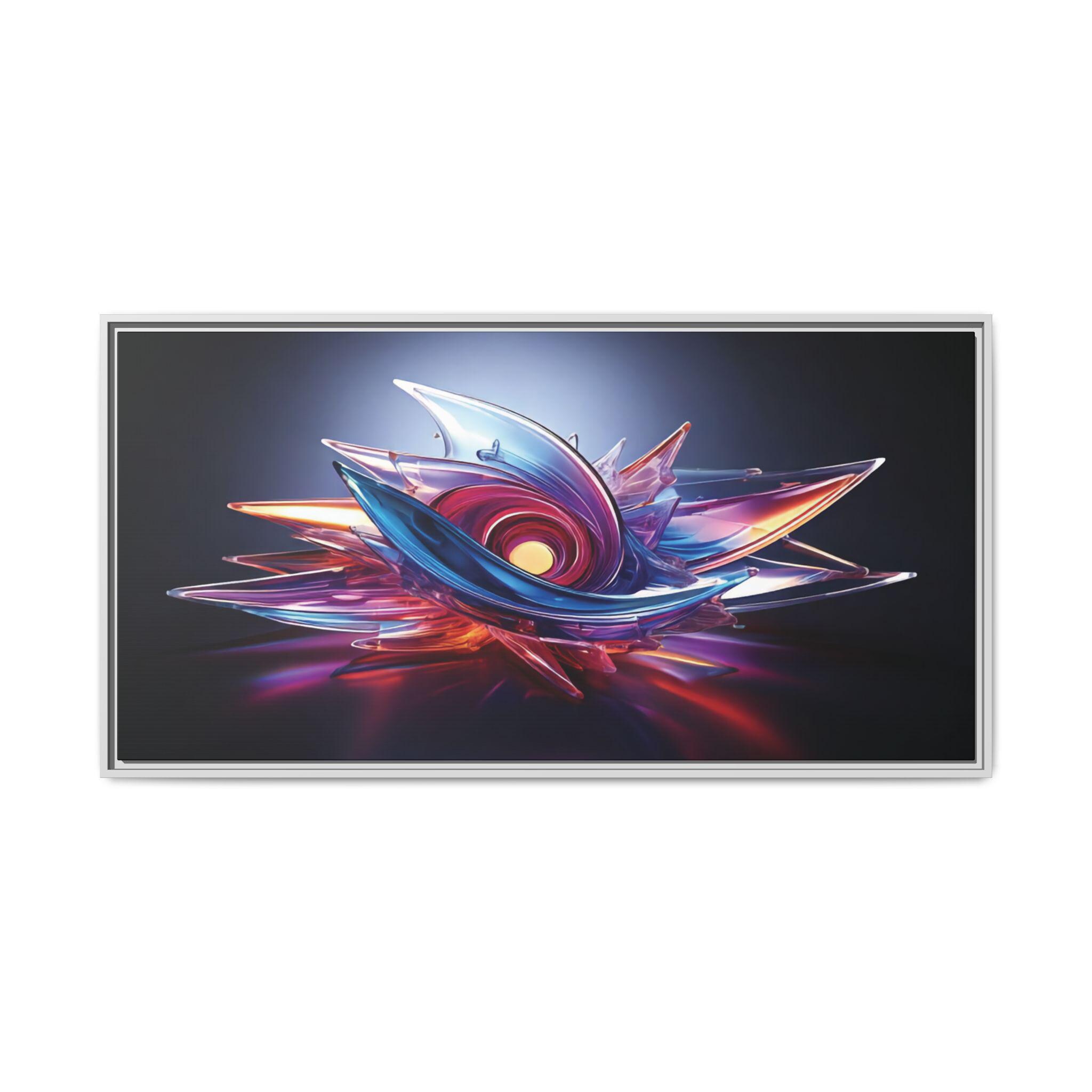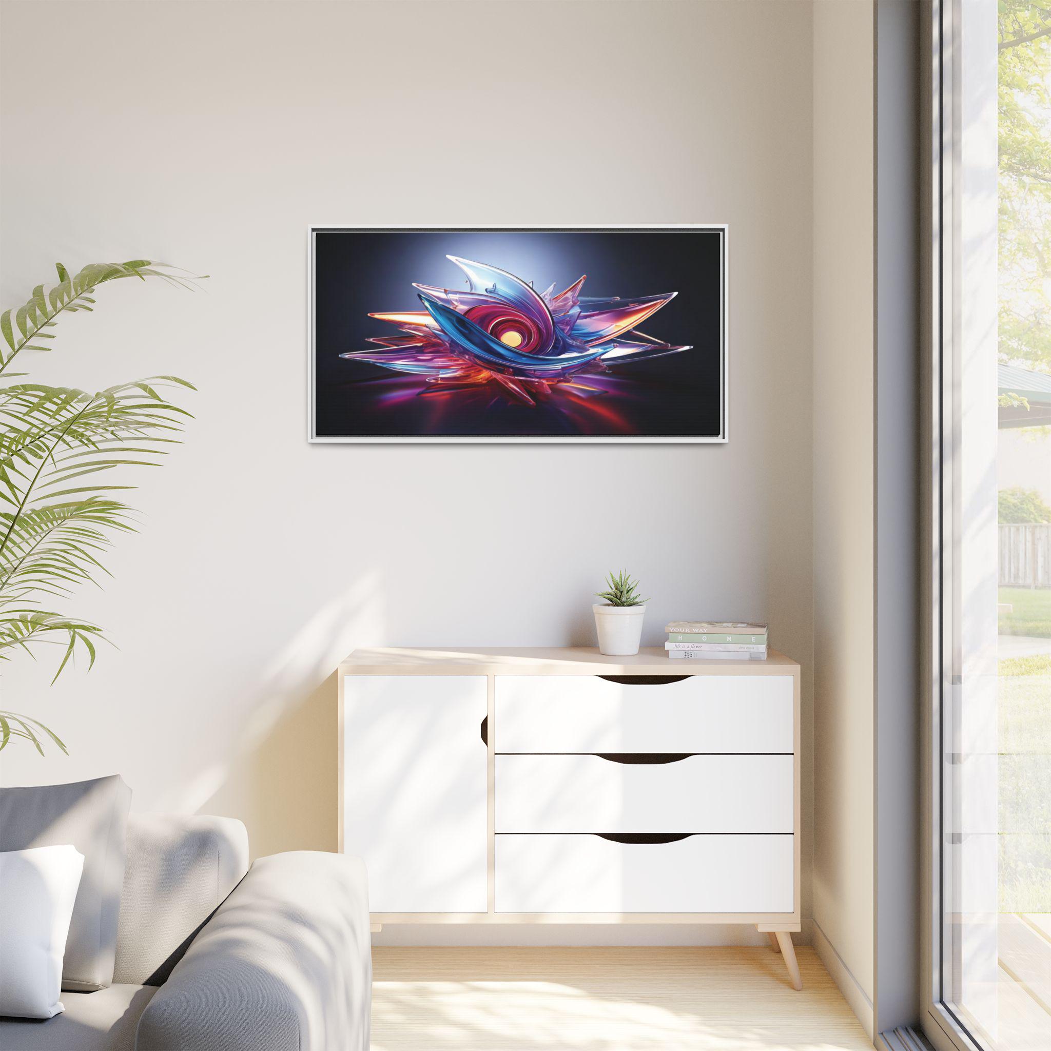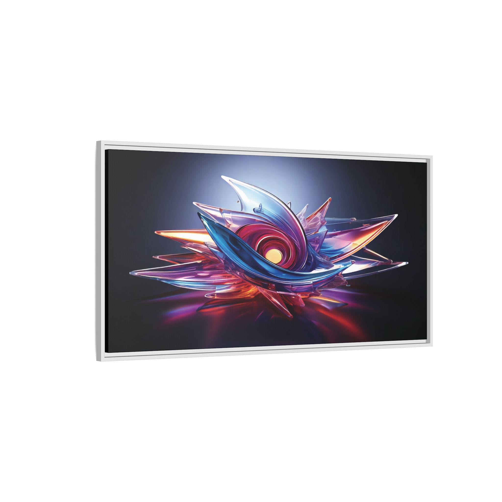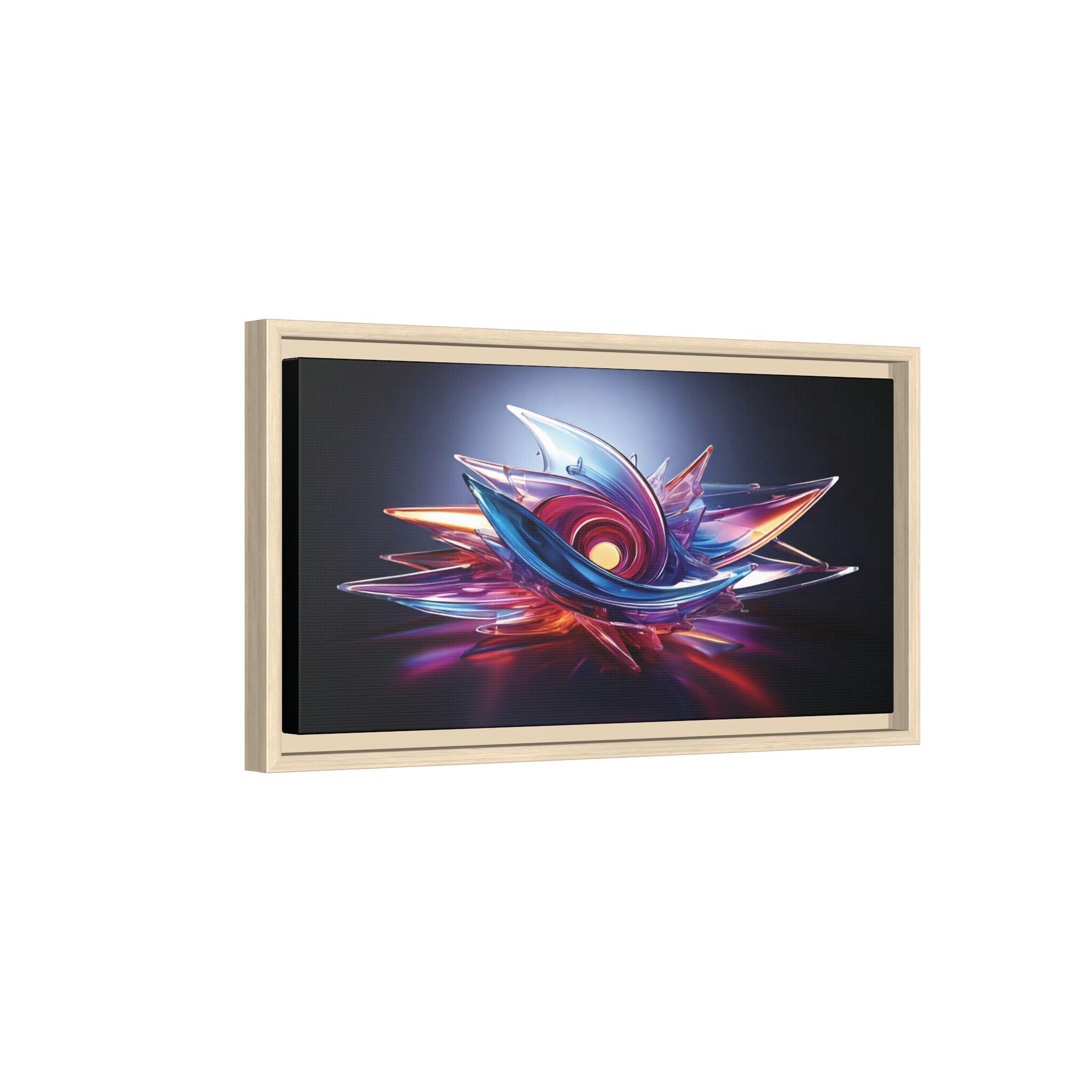 A framed matte canvas print that pulls the room into another world. Deep blacks and luminous, jewel-toned highlights give the abstract, crystalline form a sense of motion—like a captured aurora or a sculpted light wave. The slim pine frame adds a warm, natural edge that balances the artwork’s high-tech glow, making it easy to hang in living rooms, home studios, or modern office nooks. It arrives ready to display with sawtooth hardware and a robust, sustainably sourced frame that keeps the image flat and vivid for years.