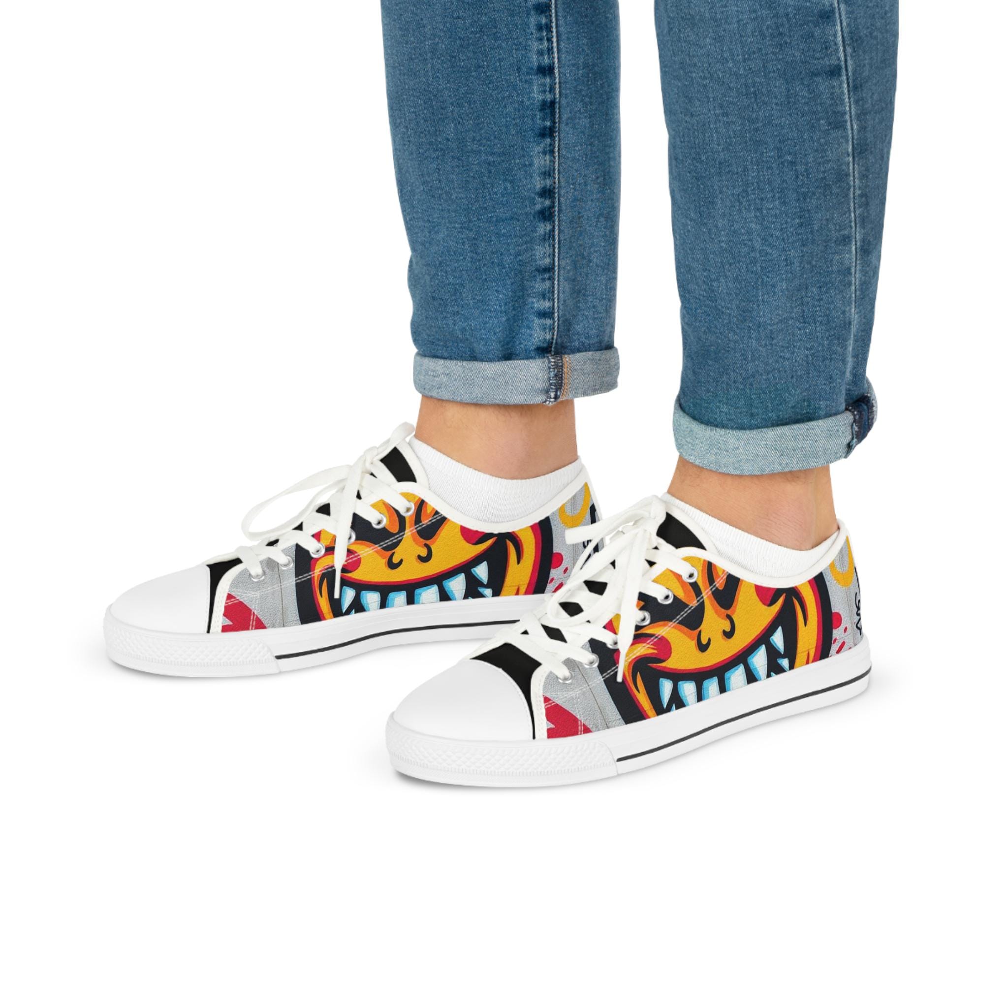 Evil Smile Graffiti Emoji Face Men's Low Top Sneakers | Bold Streetwear Illustration