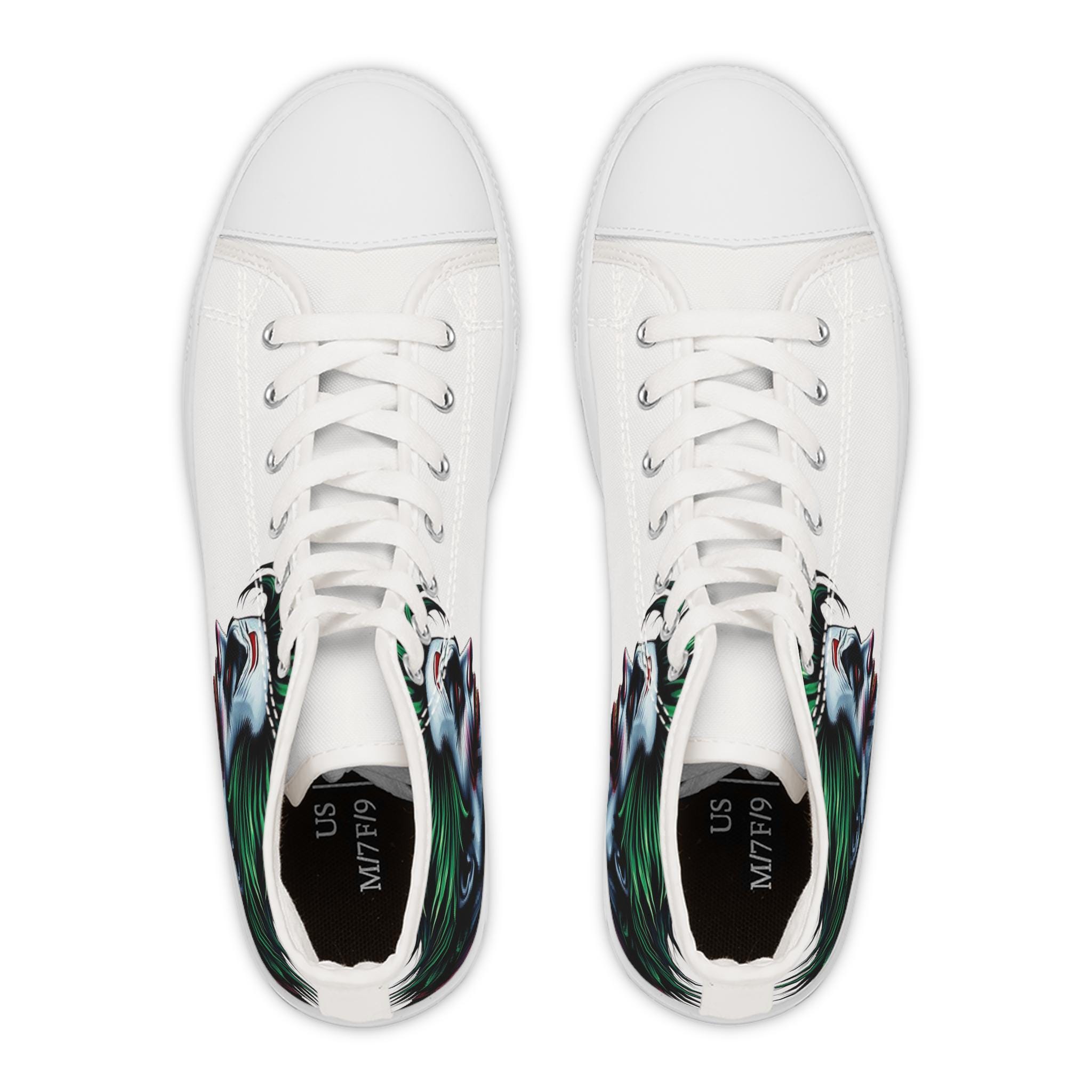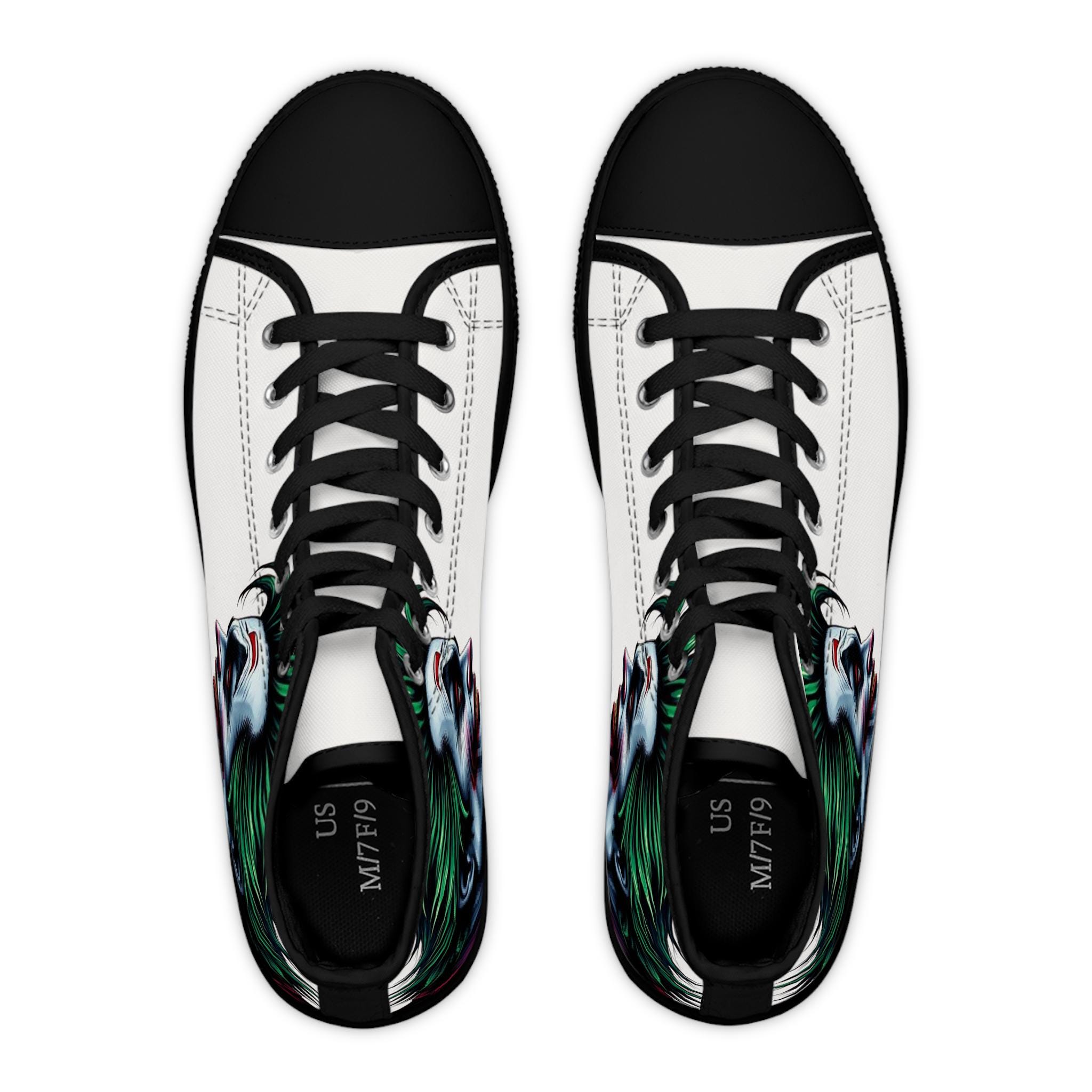 Step into a darker kind of playful rebellion. These high-top sneakers merge bold, cinematic artwork with everyday wearability — the painted, green-haired grin peeking from the ankle adds a mischievous edge to jeans, layered looks, or festival outfits. The canvas upper keeps the silhouette light and breathable, while the pleather toe and durable rubber sole handle city streets and late-night roamings. Memory foam EVA insoles cushion each step so you can wander longer without the ache. Wear them when you want an outfit that whispers trouble and tells a story: comic-book energy, midnight walks, and soundtrack-ready moments all wrapped into one pair.