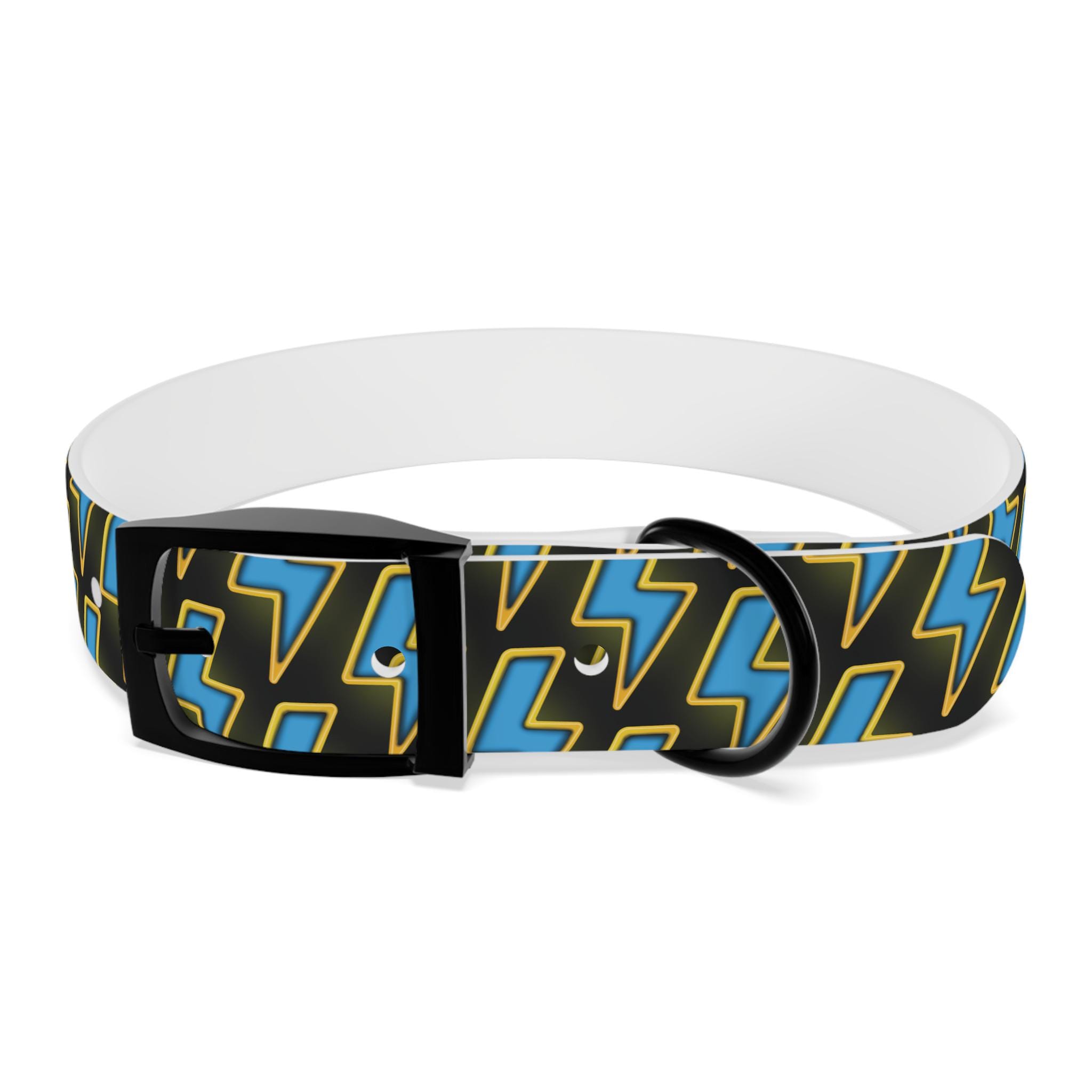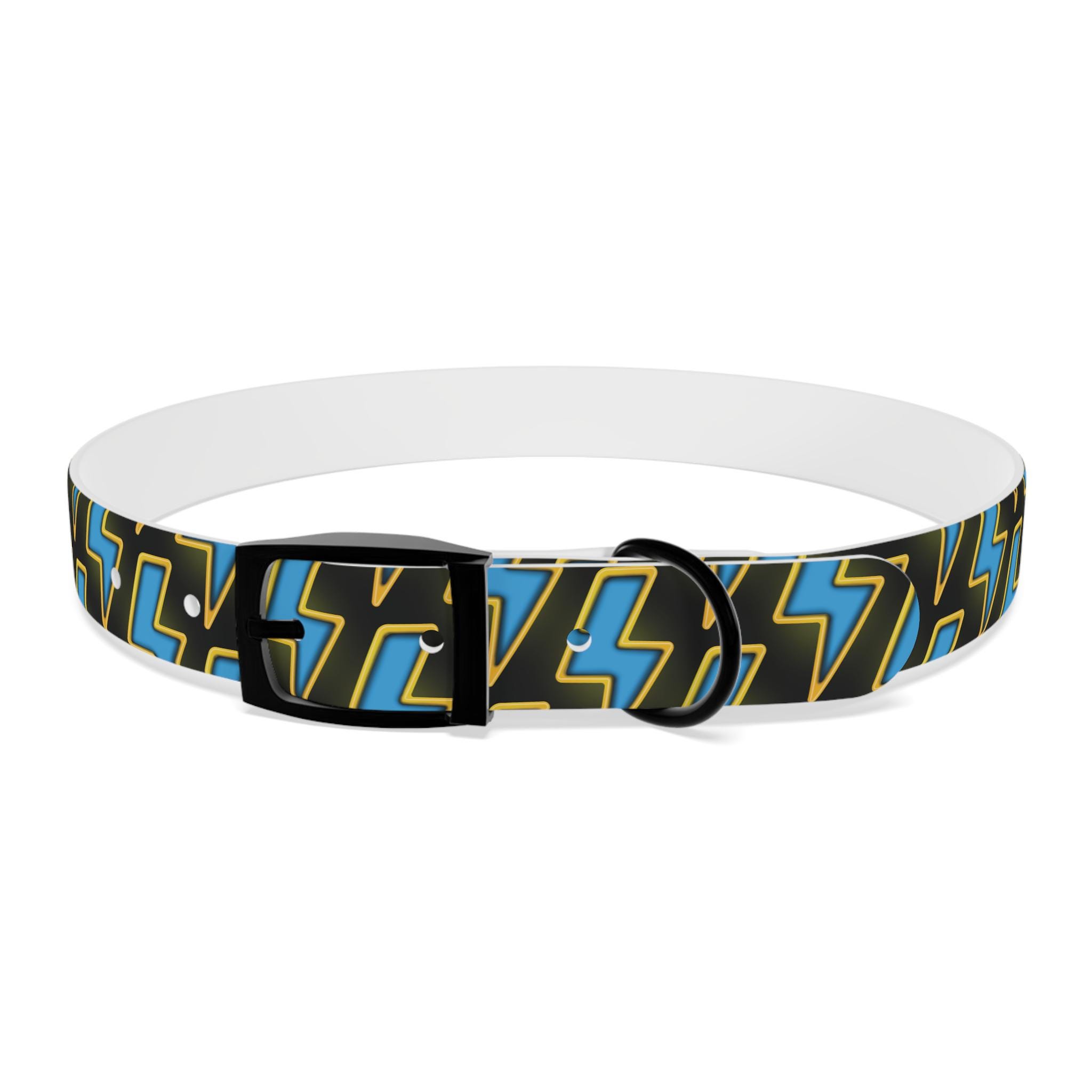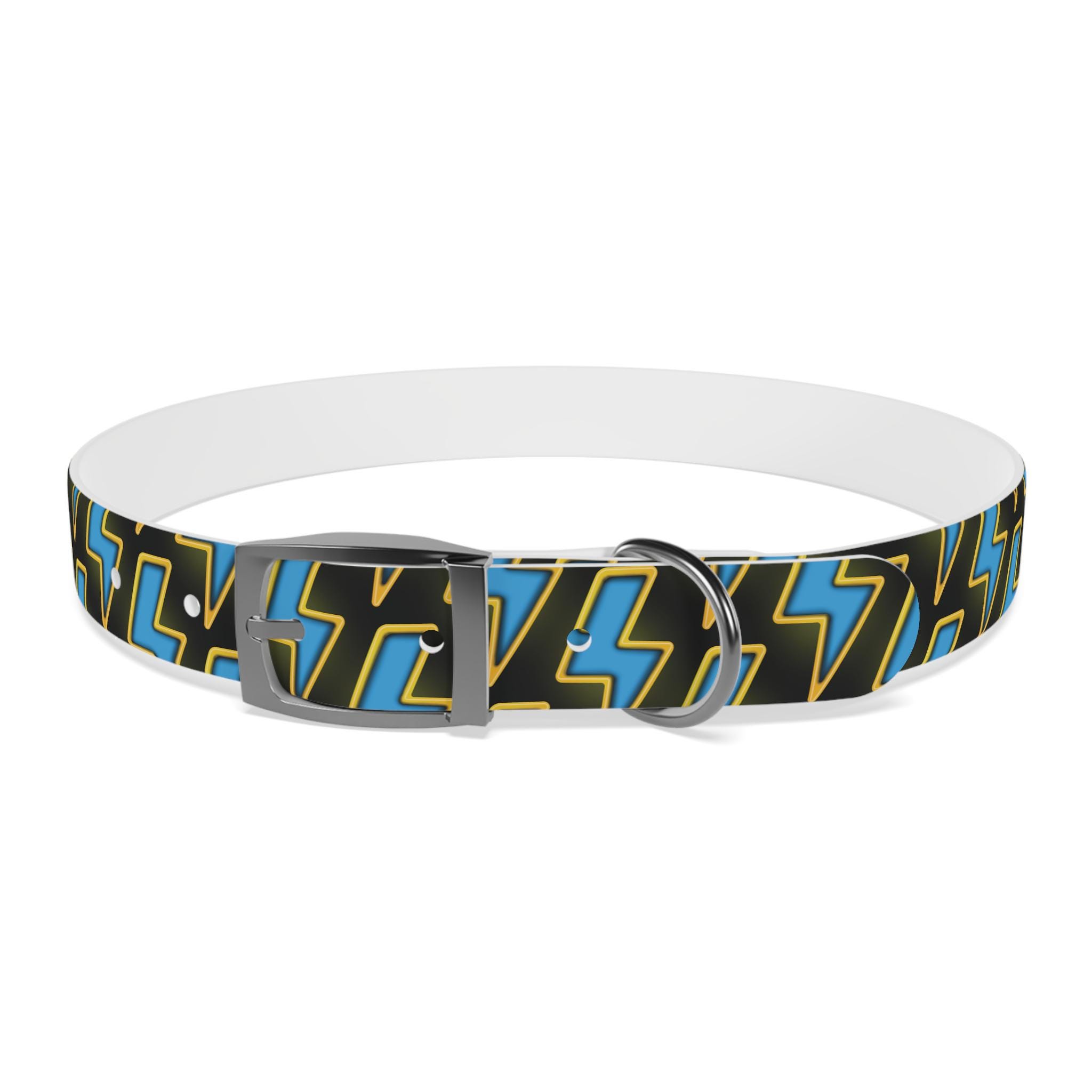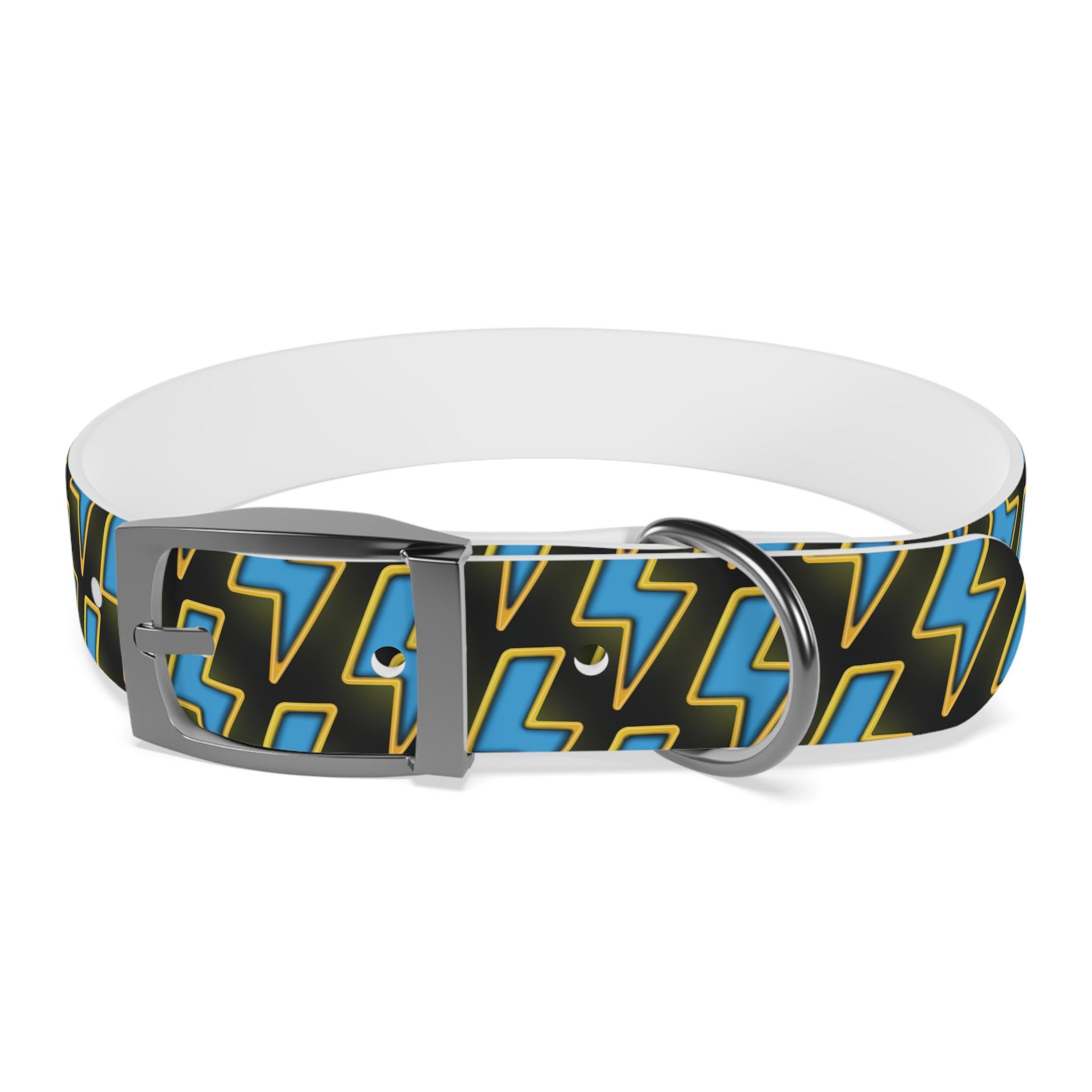 Bold, waterproof, and built to move with your dog. This collar pairs rugged TPU construction with a punchy lightning-pattern print for pups who love to explore — from city sidewalks to muddy trails. The smooth, odor-resistant surface wipes clean after puddle jumps, while the structured yet flexible material keeps the fit comfortable during long walks. Choose from four anodized aluminum buckle finishes to match your dog’s personality, and pick the right size so every adventure stays secure and stylish.