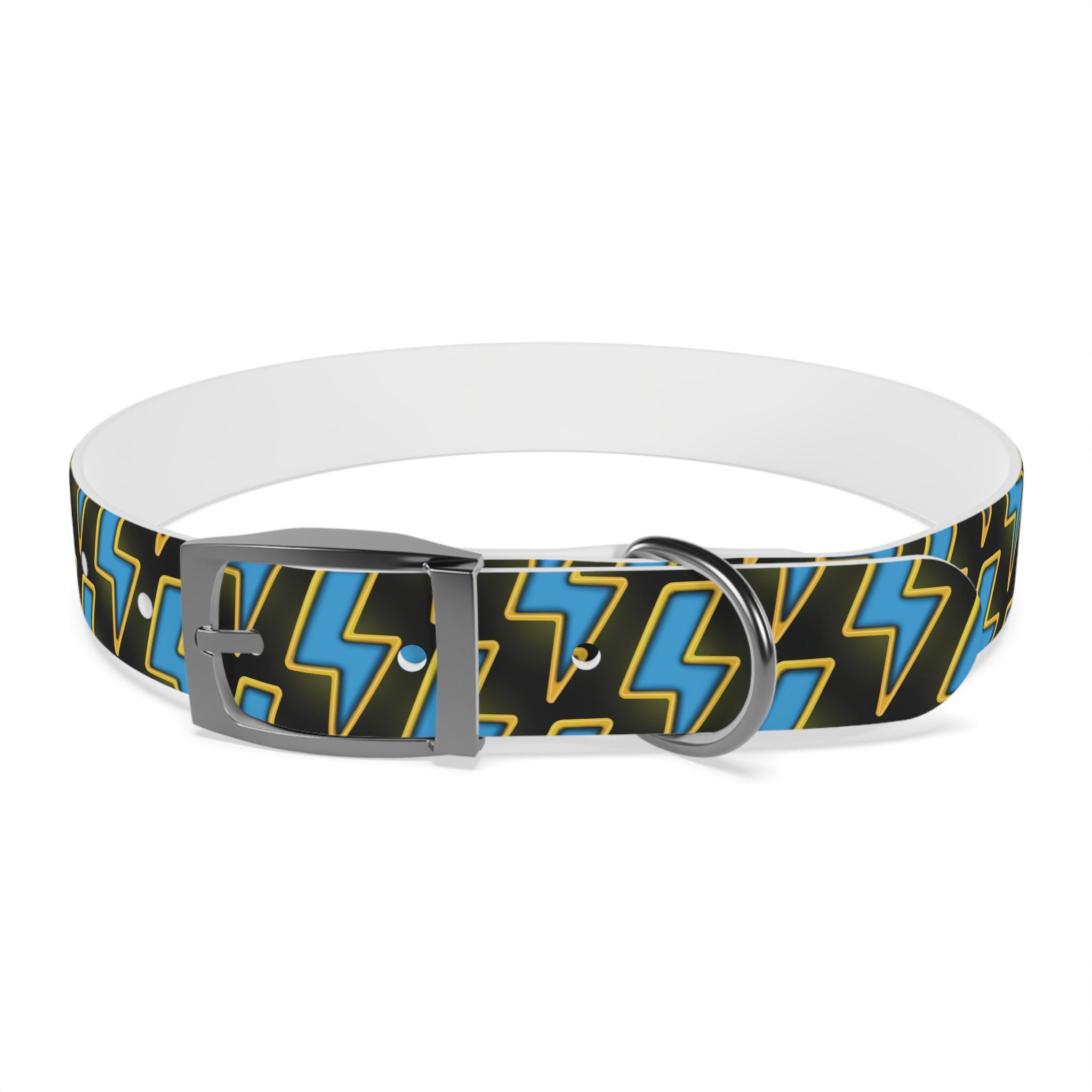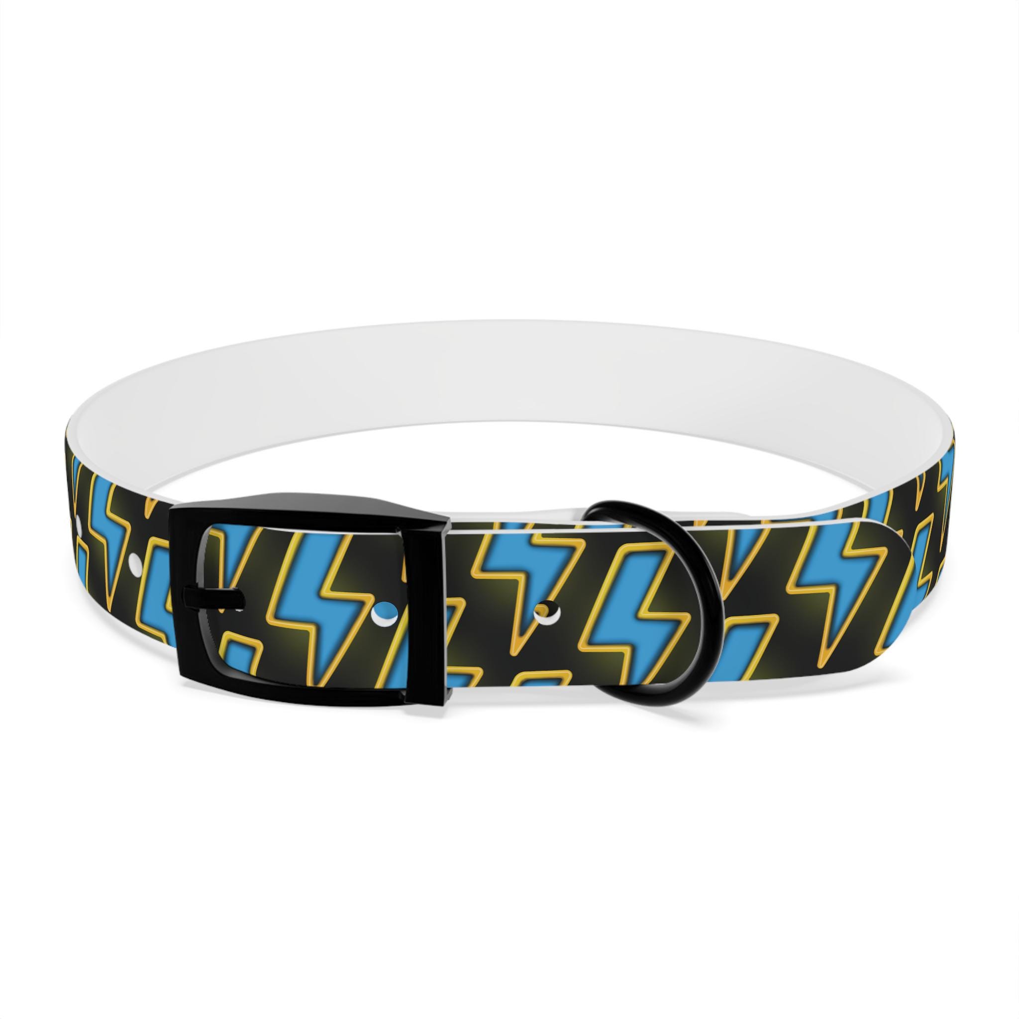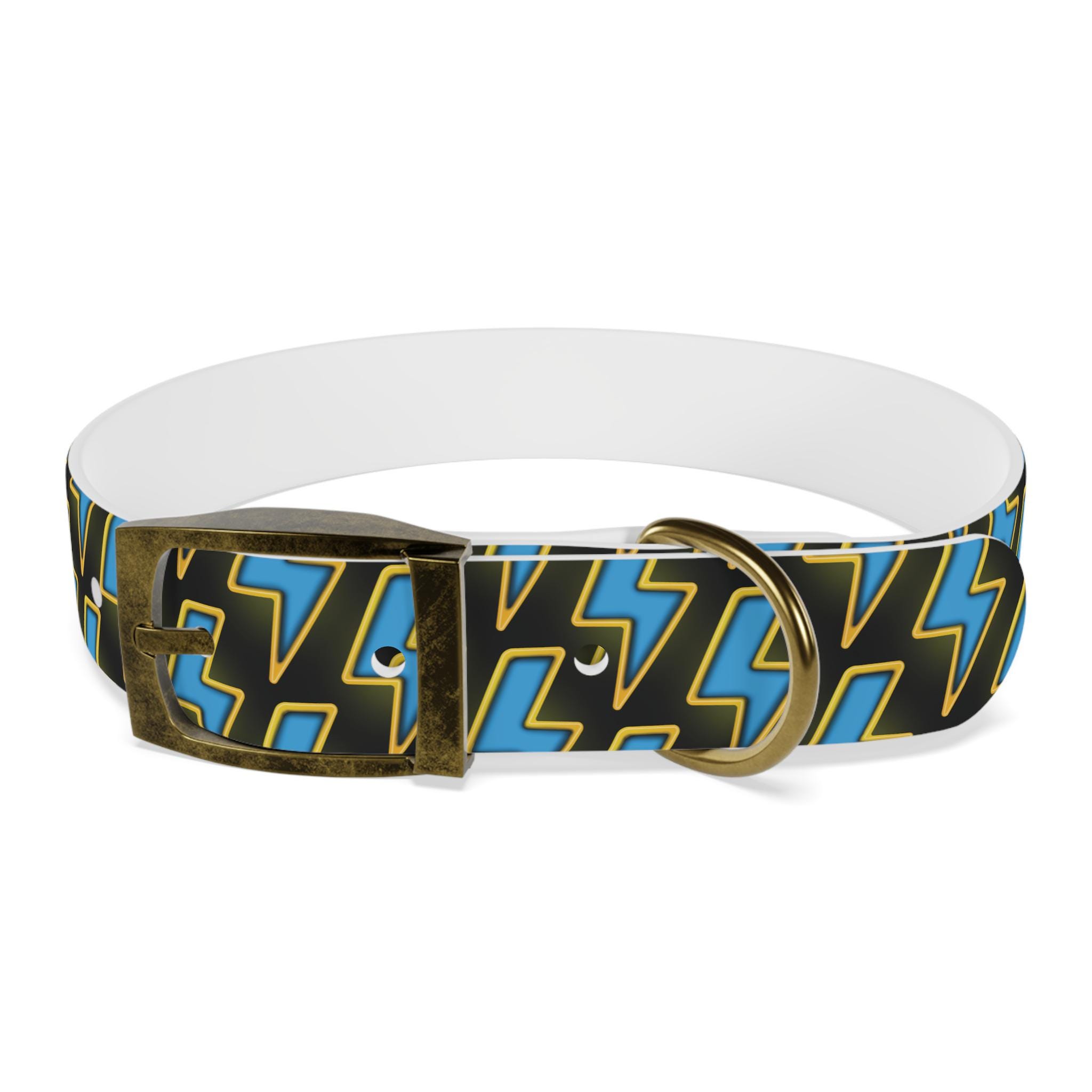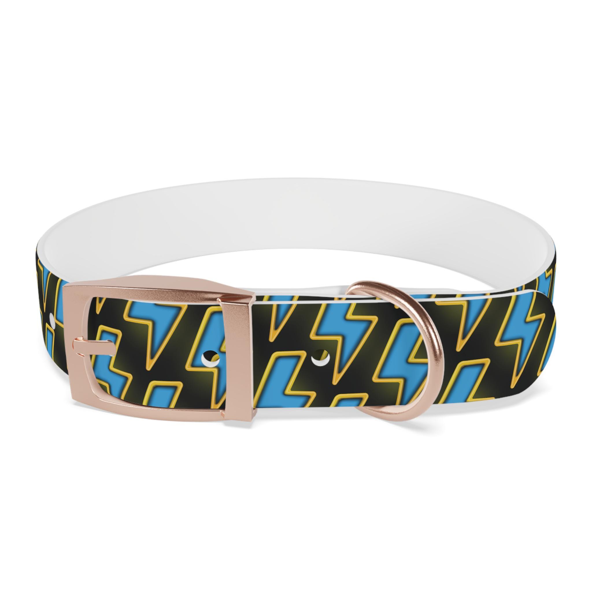 Bold, waterproof, and built to move with your dog. This collar pairs rugged TPU construction with a punchy lightning-pattern print for pups who love to explore — from city sidewalks to muddy trails. The smooth, odor-resistant surface wipes clean after puddle jumps, while the structured yet flexible material keeps the fit comfortable during long walks. Choose from four anodized aluminum buckle finishes to match your dog’s personality, and pick the right size so every adventure stays secure and stylish.