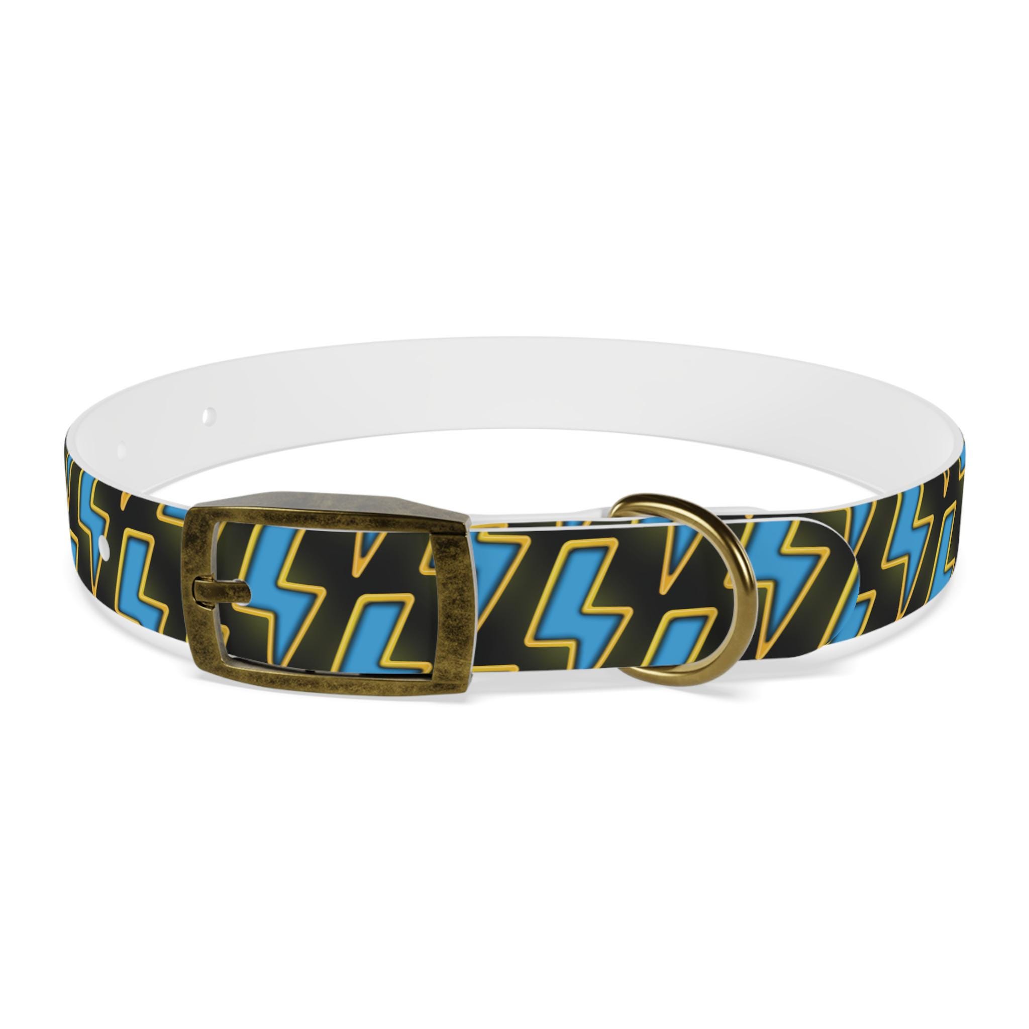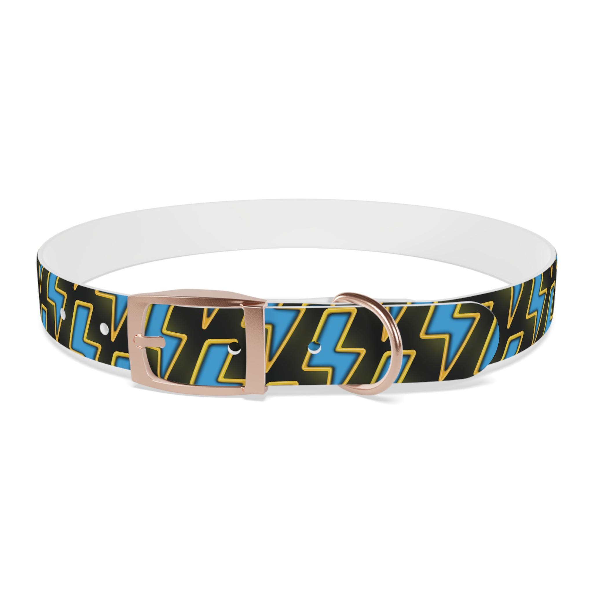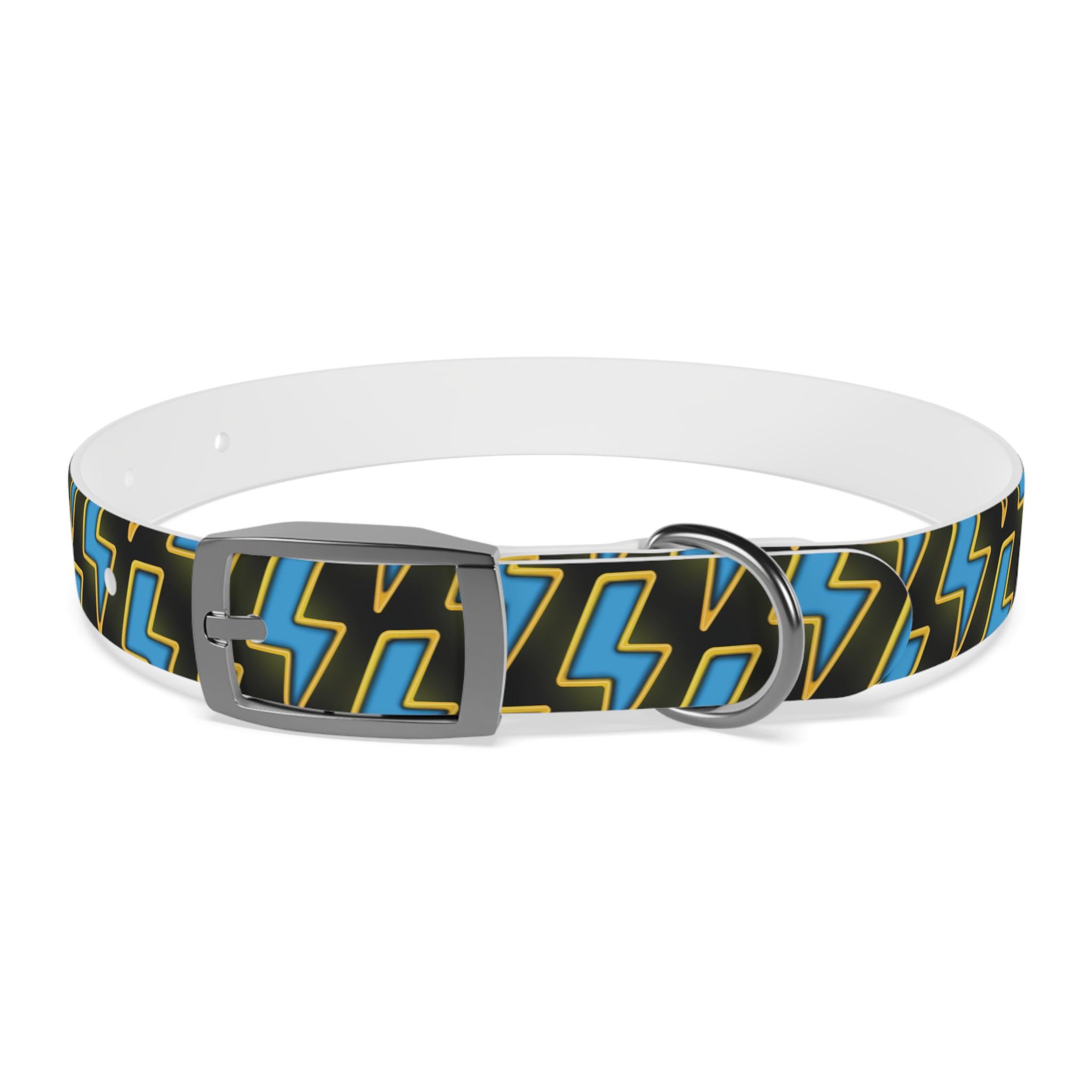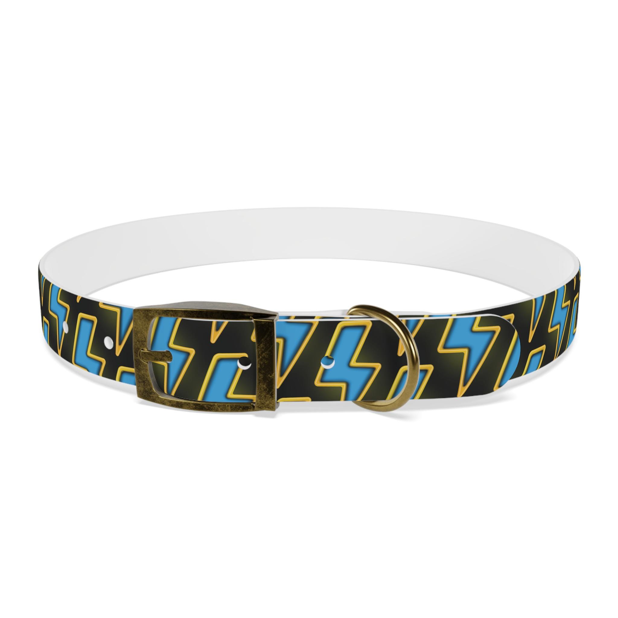 Bold, waterproof, and built to move with your dog. This collar pairs rugged TPU construction with a punchy lightning-pattern print for pups who love to explore — from city sidewalks to muddy trails. The smooth, odor-resistant surface wipes clean after puddle jumps, while the structured yet flexible material keeps the fit comfortable during long walks. Choose from four anodized aluminum buckle finishes to match your dog’s personality, and pick the right size so every adventure stays secure and stylish.