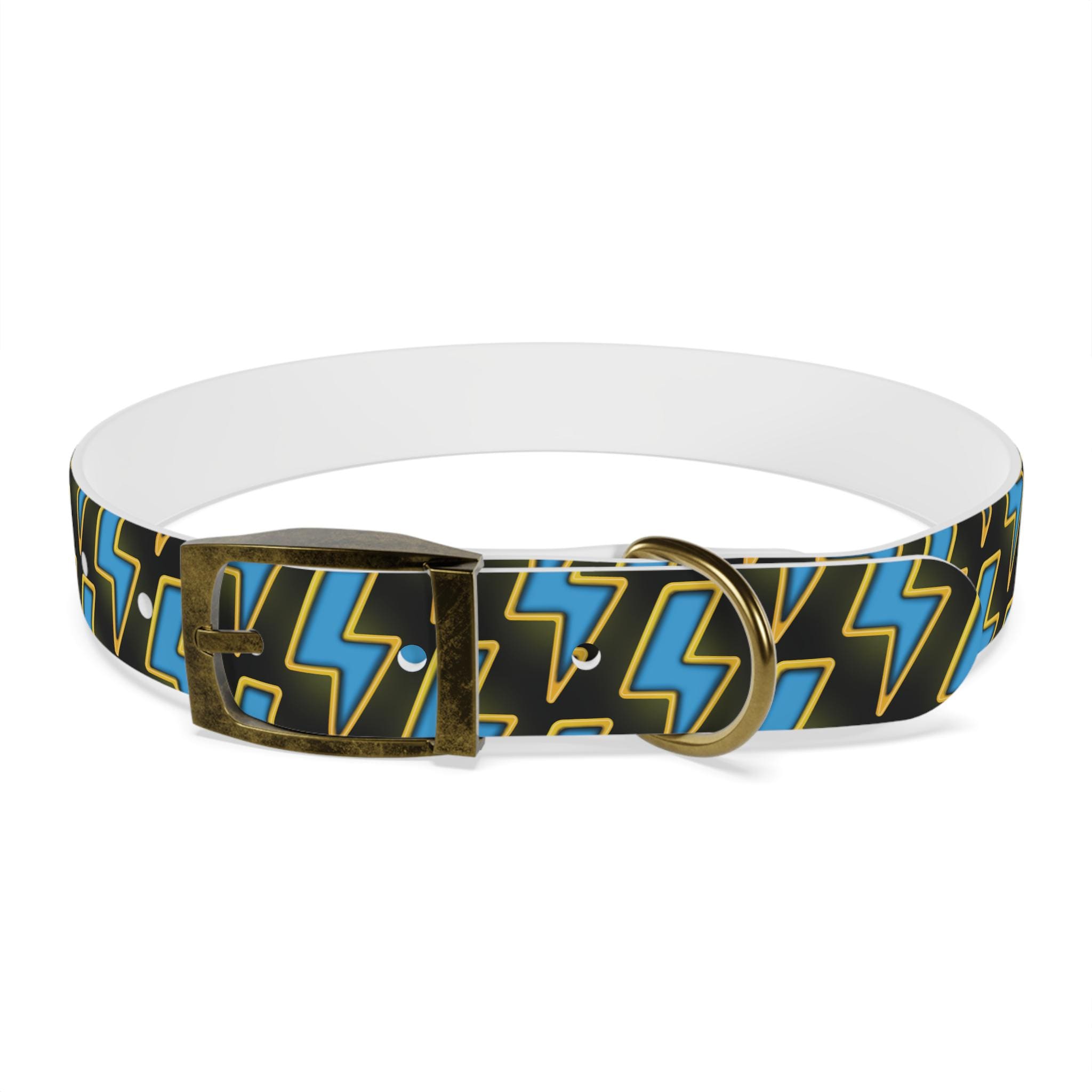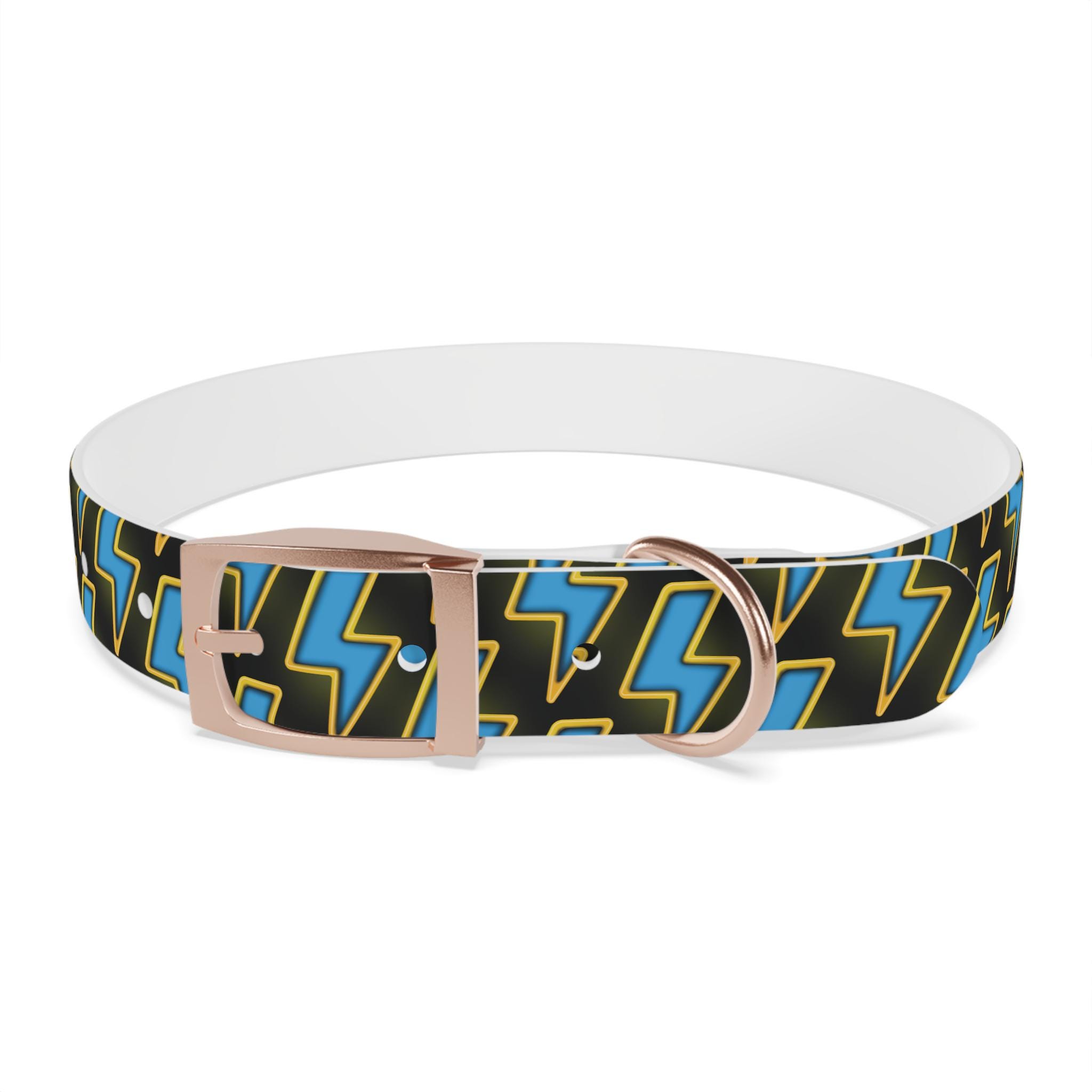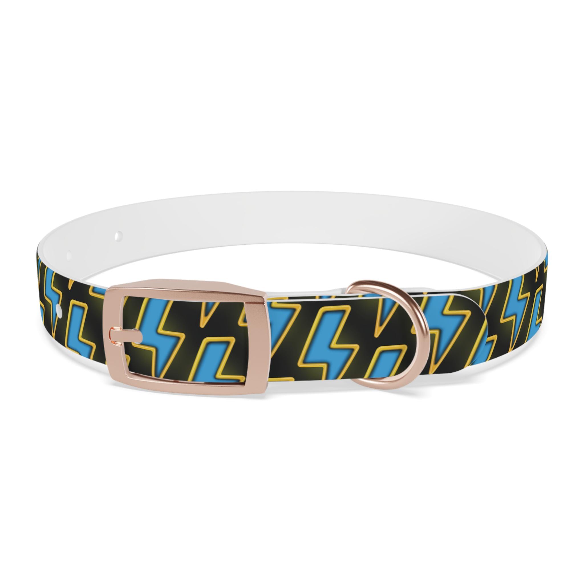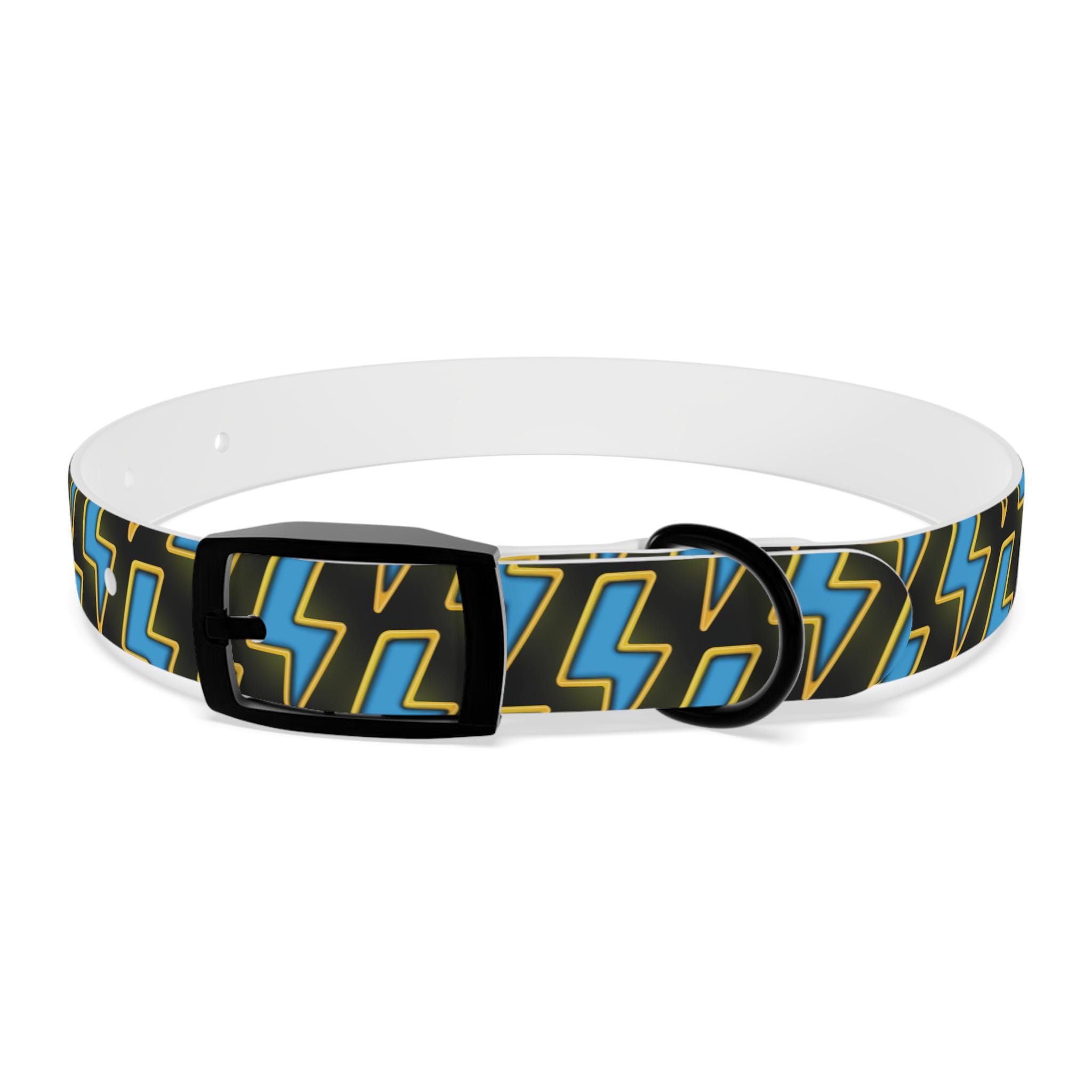 Bold, waterproof, and built to move with your dog. This collar pairs rugged TPU construction with a punchy lightning-pattern print for pups who love to explore — from city sidewalks to muddy trails. The smooth, odor-resistant surface wipes clean after puddle jumps, while the structured yet flexible material keeps the fit comfortable during long walks. Choose from four anodized aluminum buckle finishes to match your dog’s personality, and pick the right size so every adventure stays secure and stylish.