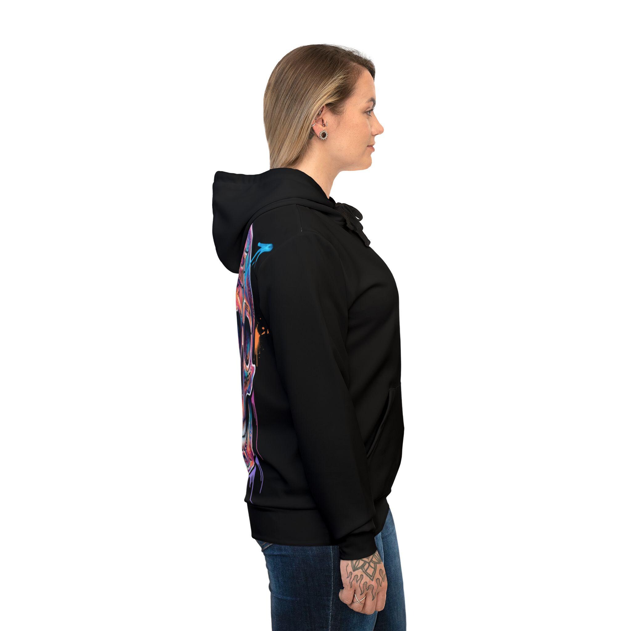 The atmosphere is gritty and creative: think alleyway murals, synth beats, and friends gathered under sodium lamps. This hoodie fits into a life that prizes expressive graphics, sustainable materials, and a relaxed, athletic cut. It speaks to makers, skaters, and night-shift creatives who want a statement piece that still feels lived-in and comfortable. Bring it to gallery openings, band practices, or post-session hangs—wherever you want color that refuses to fade.